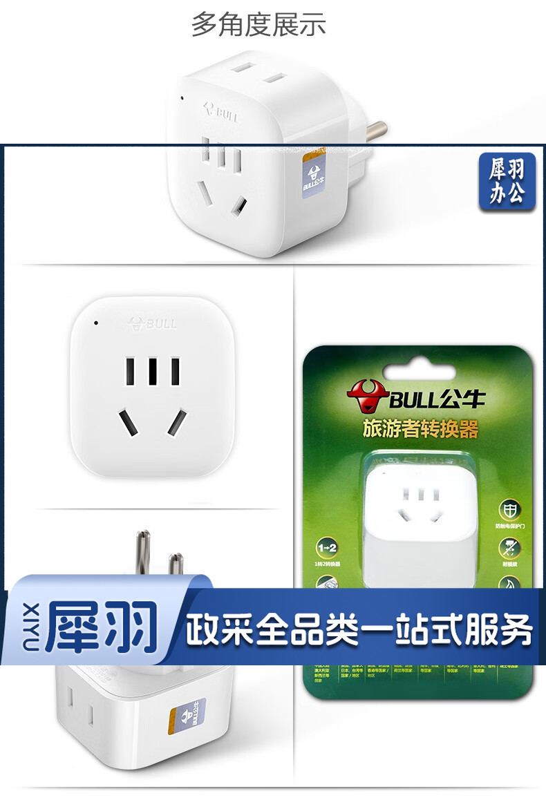 公牛(BULL)GN-L01G插头/2位德标转国标/电源转换器插座/转换插头 适合国外使用