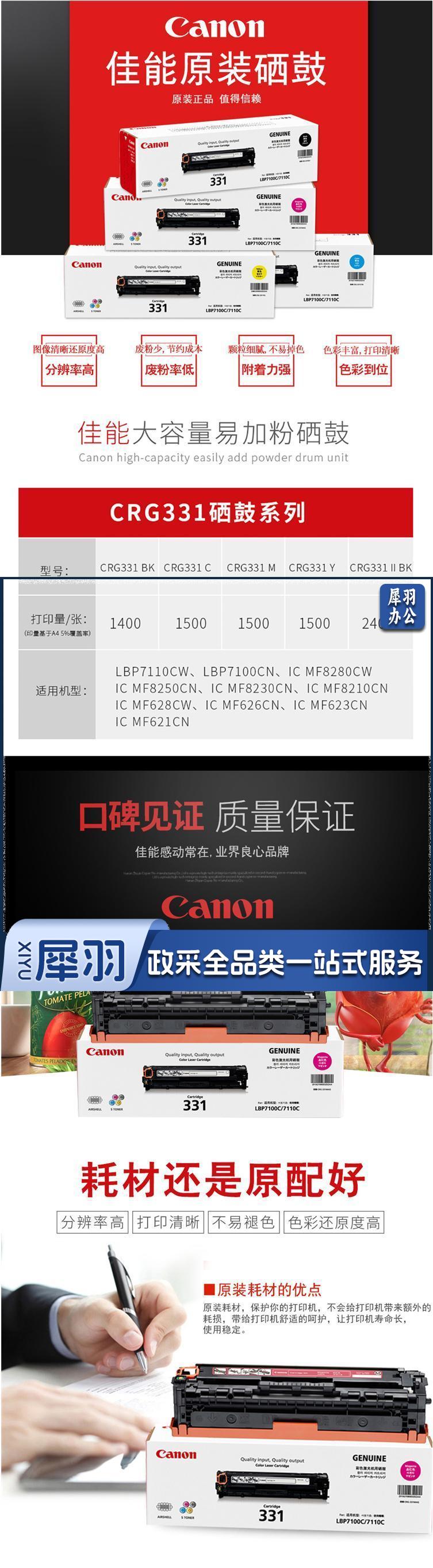 佳能 Canon CRG-331硒鼓(单支装)适用于LBP7110Cw/LBP7100Cn/iC MF8280Cw/iC MF8250Cn MF628CW MF621CN)