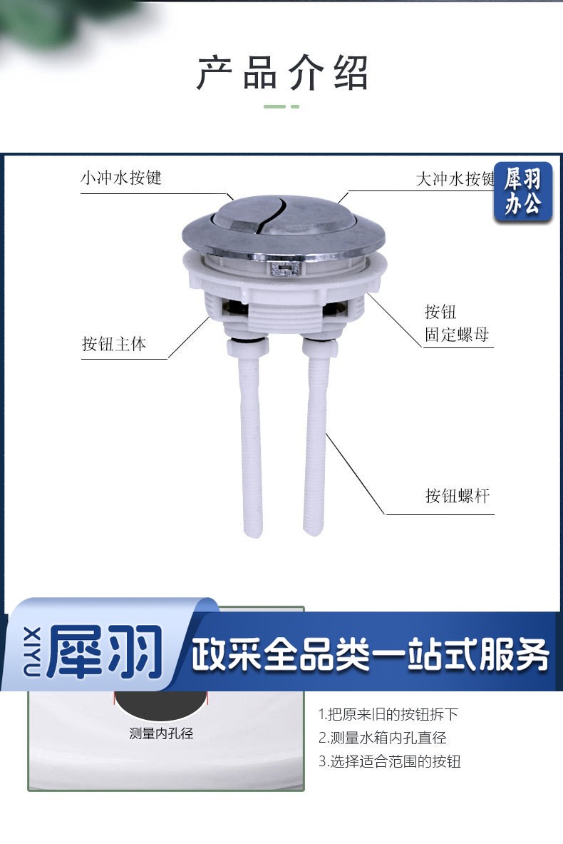 大号58mm 马桶水箱按钮圆形双按坐便器老式抽水马桶冲水按键通用开关配件
