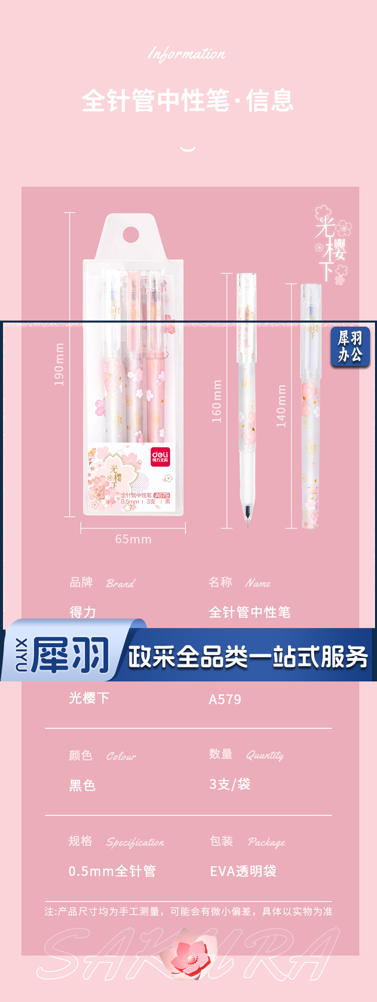 得力A579学生中性笔0.5mm全针管(黑)(3支/袋)
