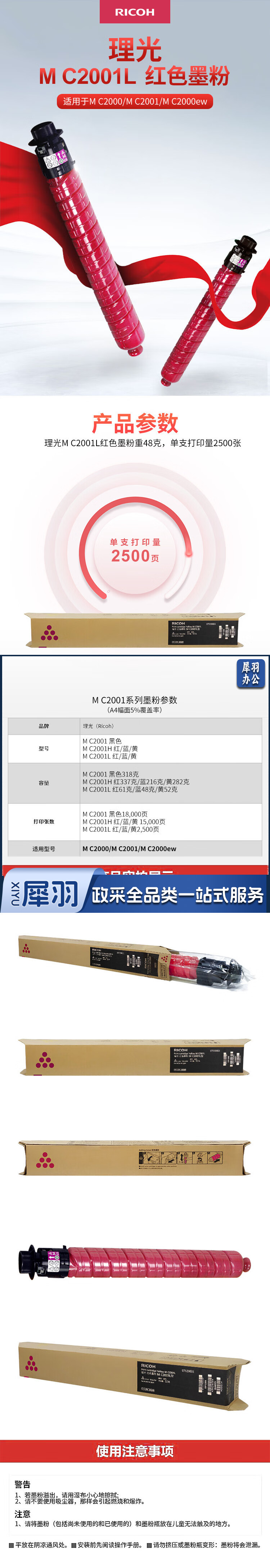 理光(Ricoh)M C2001L 红色墨粉盒 适用于M C2000/M C2001/M C2000ew