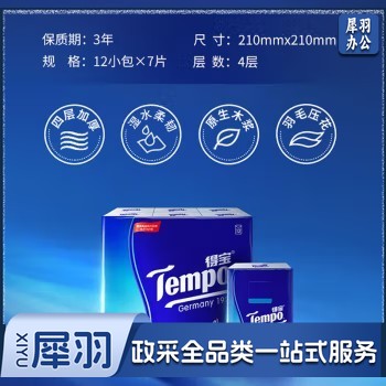 得宝(TEMPO) 手帕纸 经典无香4层7张*12包 湿水不破 纸巾小包 面巾纸