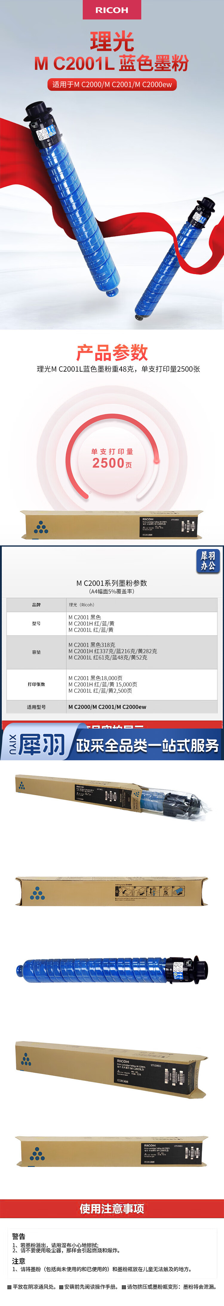 理光(Ricoh)M C2001L 蓝色墨粉盒 适用于M C2000/M C2001/M C2000ew