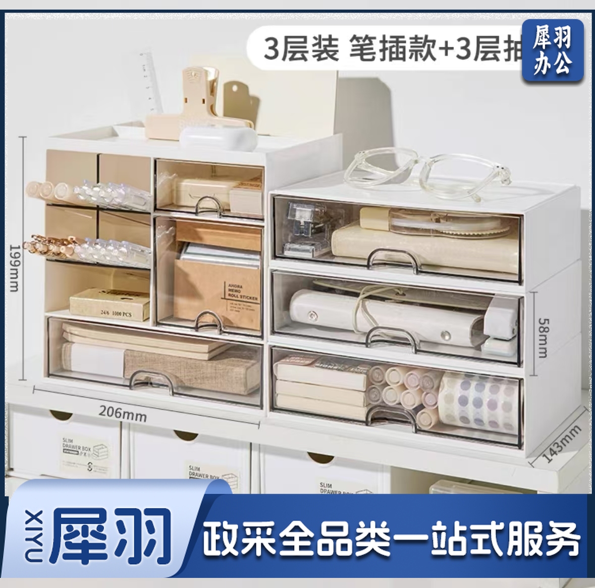 桌面收纳盒 笔筒 3层抽屉3笔 5010395