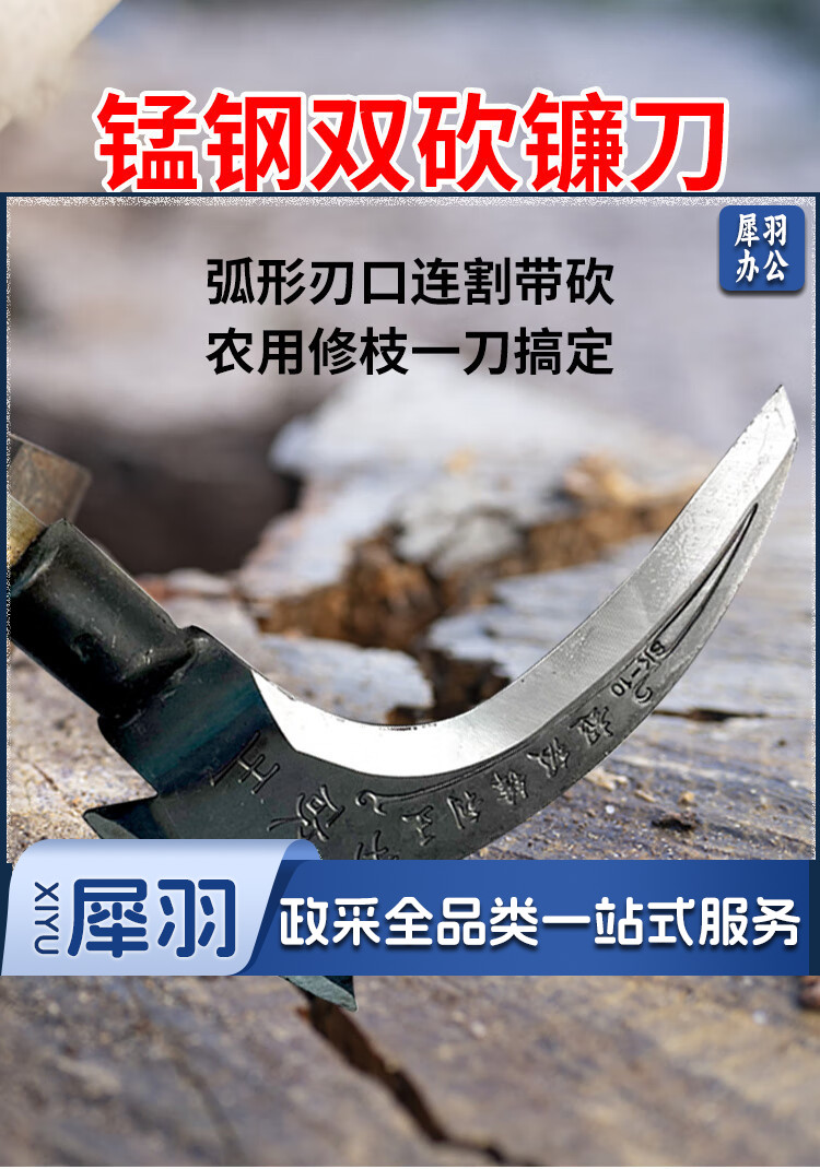 农用户外双砍割草镰刀 大加厚除草割韭菜小镰刀割草刀双镰刀头