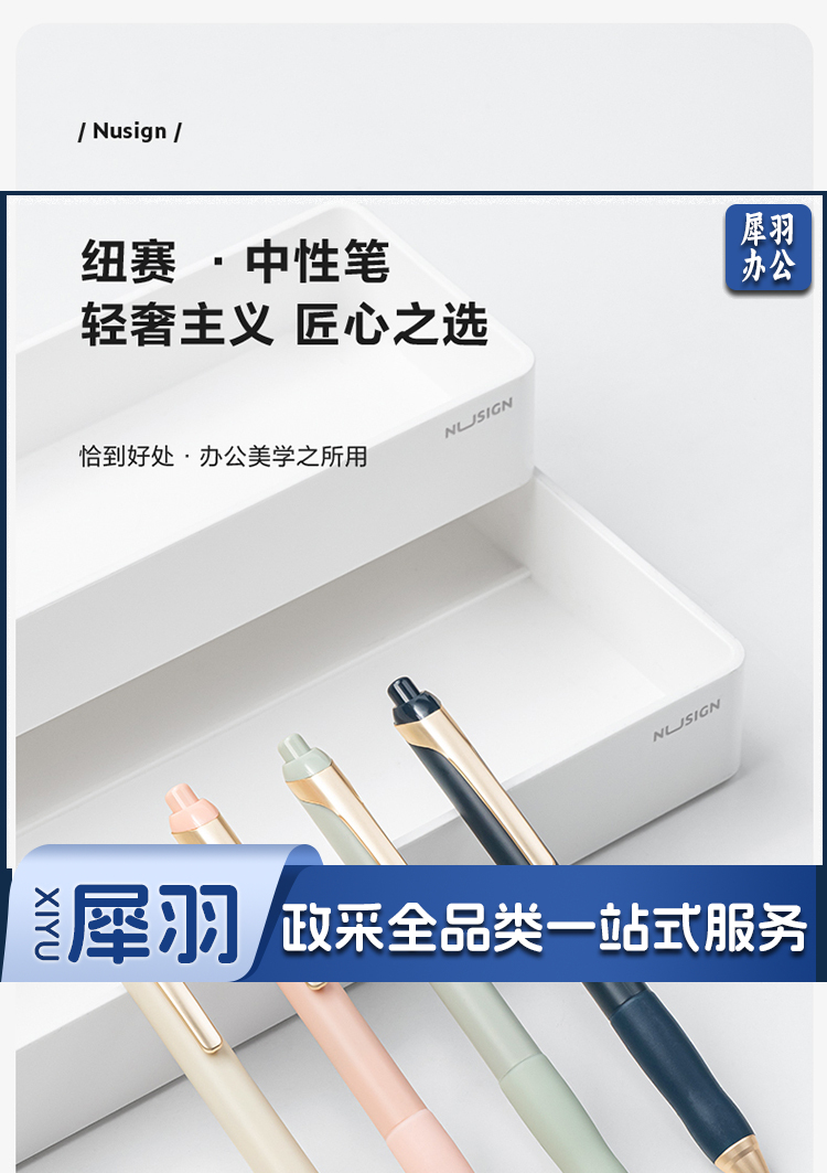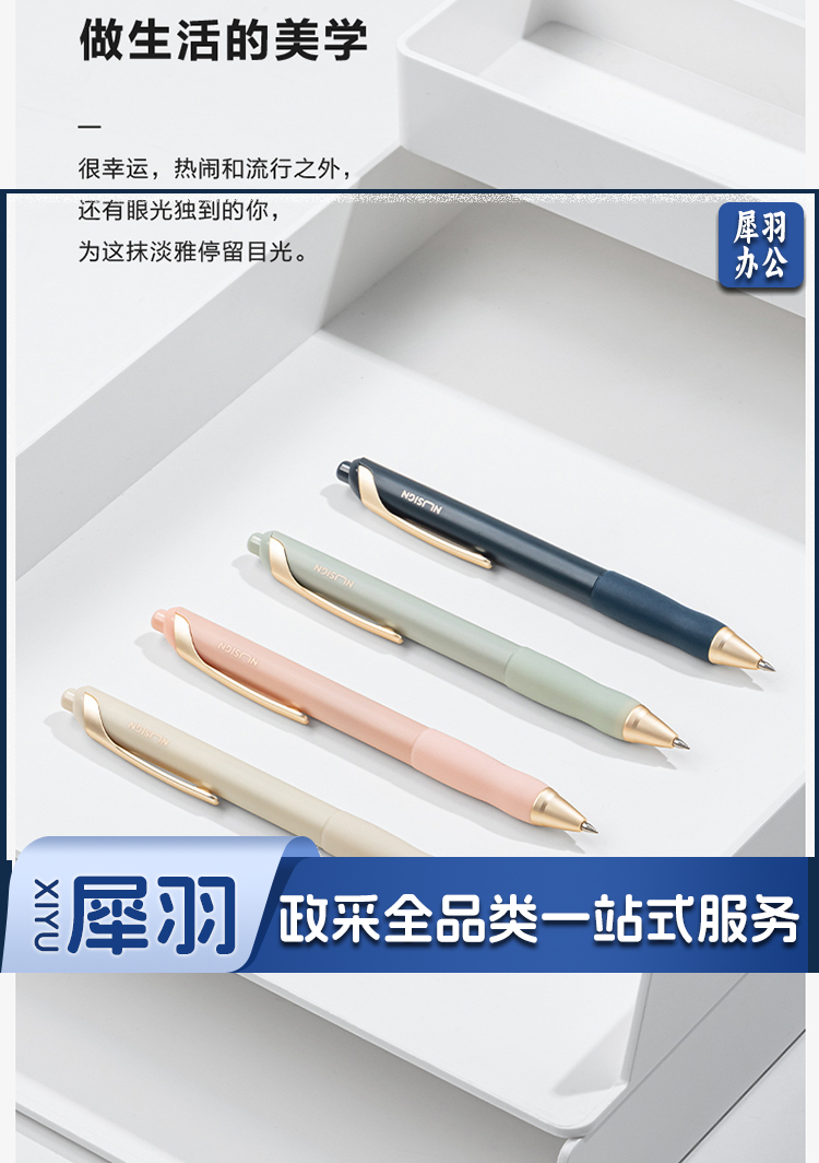 纽赛(nusign)臻顺滑按动中性笔 低重心金属铜头中性笔 0.5mm子弹头抹苔绿33785