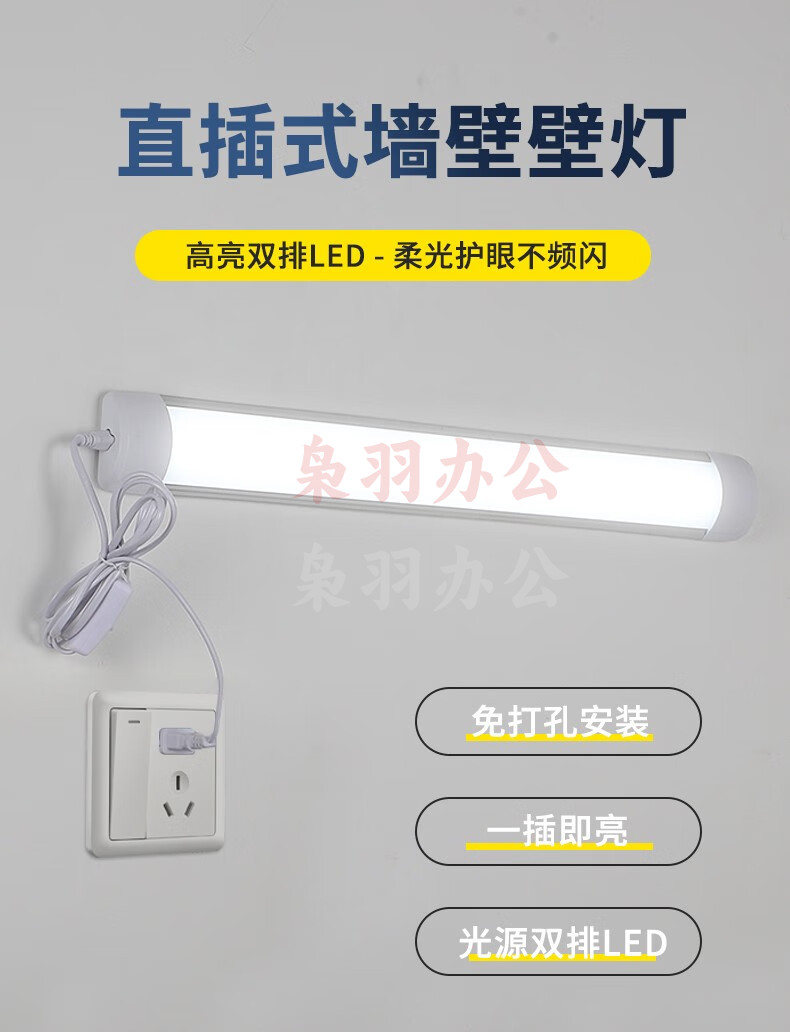 姿灯(ZIDENG)直插式led日光灯管长条家用卧室厨房吸顶床头插座寝室壁灯照明灯 免安装【60CM】1.5米线头】