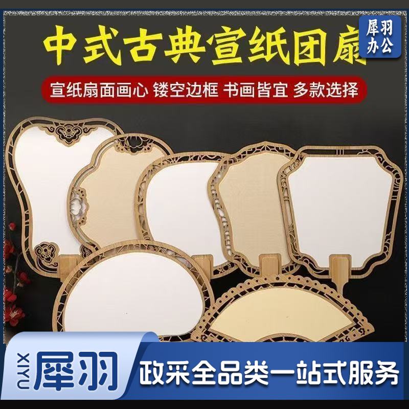 高档新款diy宣纸扇空白木质镂空宣纸团扇中国风古风国画书法扇子(仿古-皇冠,10个起订)一个价格