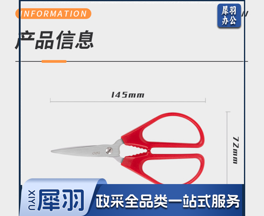 得力(deli)6035红色145mm家用生活剪刀 家庭厨房剪裁缝剪居家手工剪办公学生剪