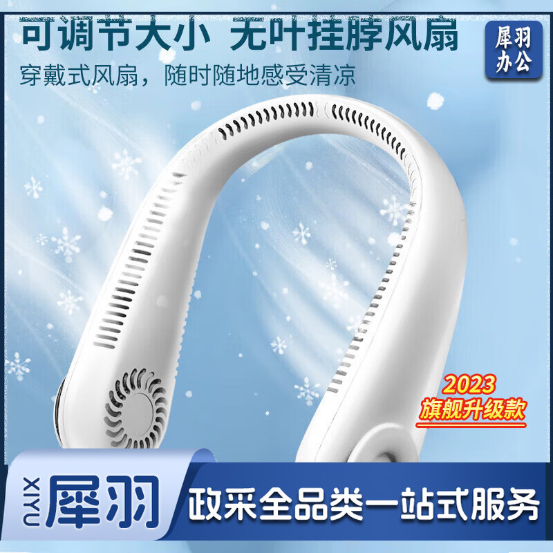 长续航充电挂脖小电风扇便携迷你无叶可穿戴空调户外制冷脖子挂式USB头戴宿舍办公室挂颈大风力 冰川白【5000M】上下后全出风+大小可调+长续航