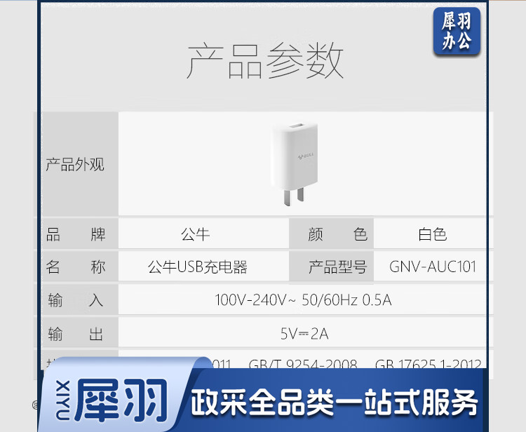 公牛(BULL)GNV-AUC101 5V-2AUSB充电器/手机充电器/适配器苹果/安卓/平板USB充电小插头