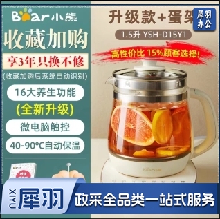 小熊小熊YSH-D15Y1养生壶办公室迷你小型煮茶壶全自动加厚玻璃 米白色 基础款