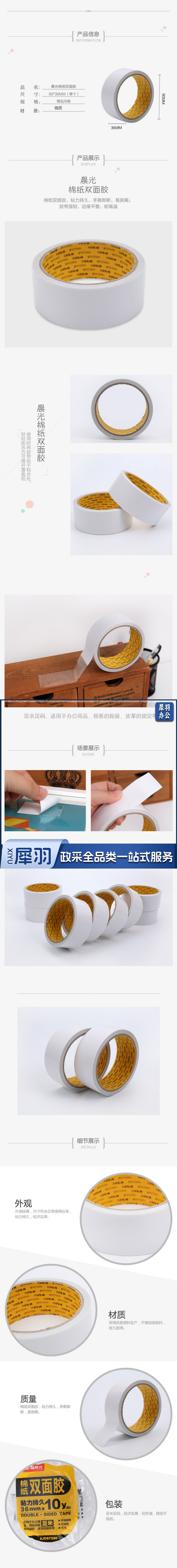 1100675154EA 晨光 AJD97390 棉纸双面胶带 36mm*10y