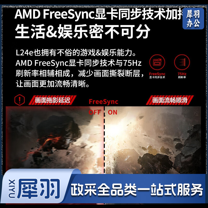 联想(Lenovo)L24e 电脑显示器FHD/2K/4K高清商务办公家用电脑显示器 低蓝光护眼显示屏极窄边框 23.8英寸/75Hz/FHD