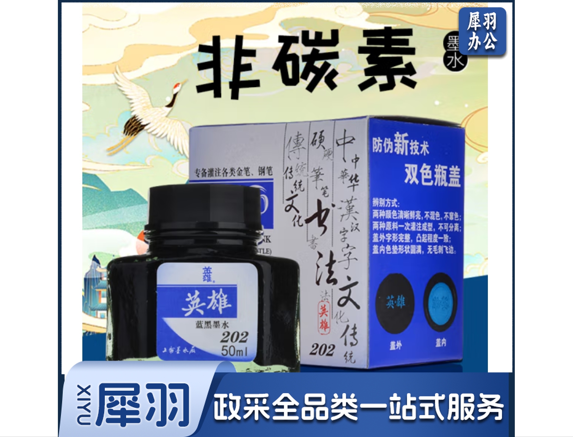 英雄(HERO)钢笔/签字笔墨水非碳素墨水50ml蓝黑色英雄墨水202