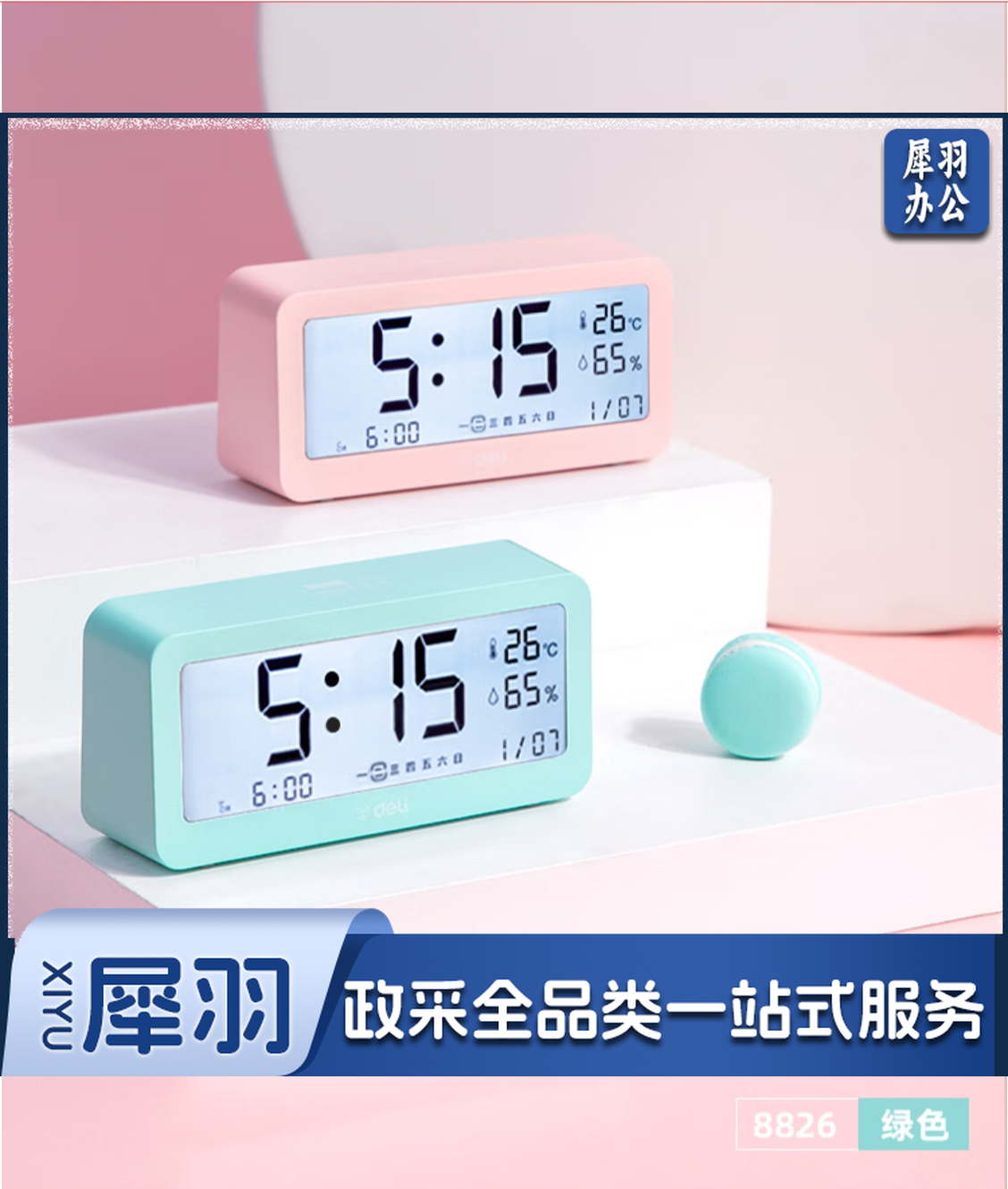 得力(deli)多功能电子闹钟 时间管理器 京东销冠闹钟背光电子钟床头钟 温湿度计功能 学生儿童礼物 绿色8826