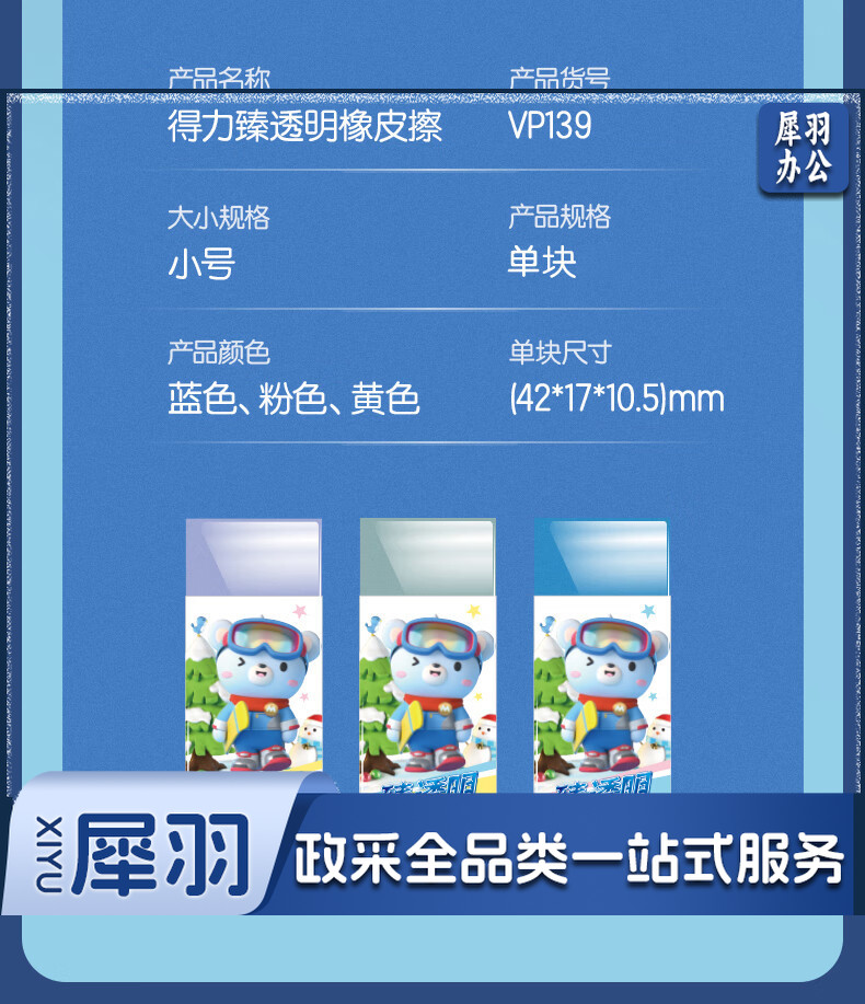 得力(deli)卡通臻透明橡皮擦 小号单块装 VP139