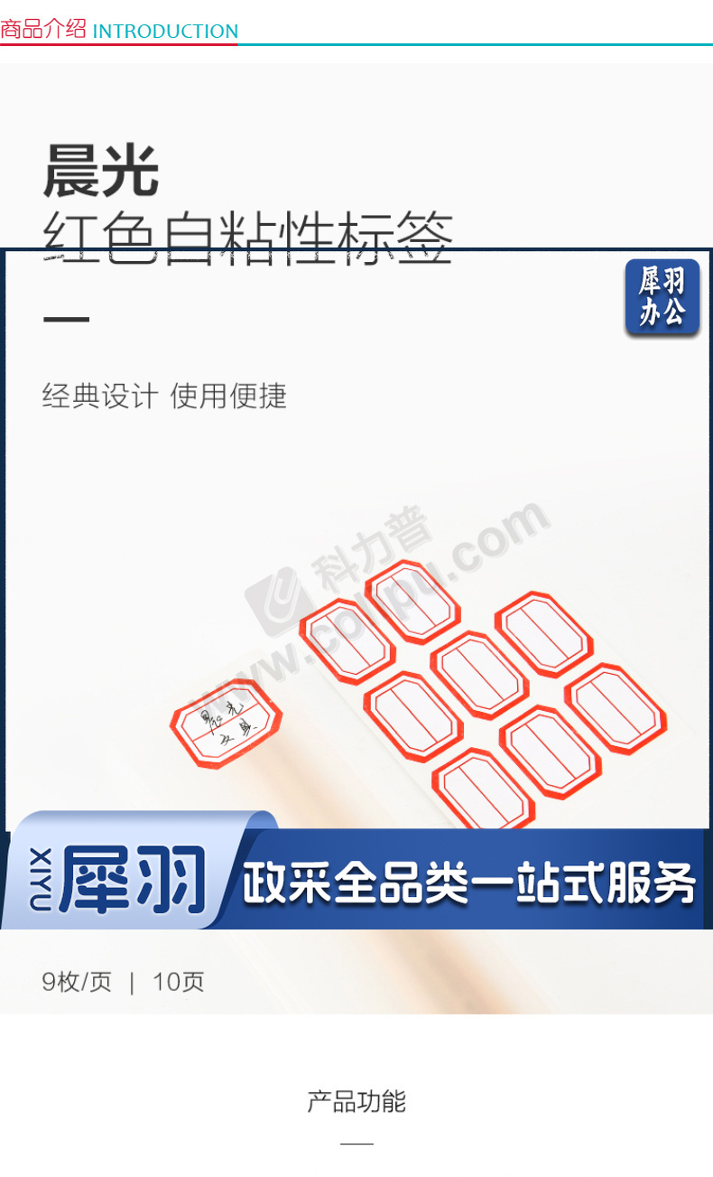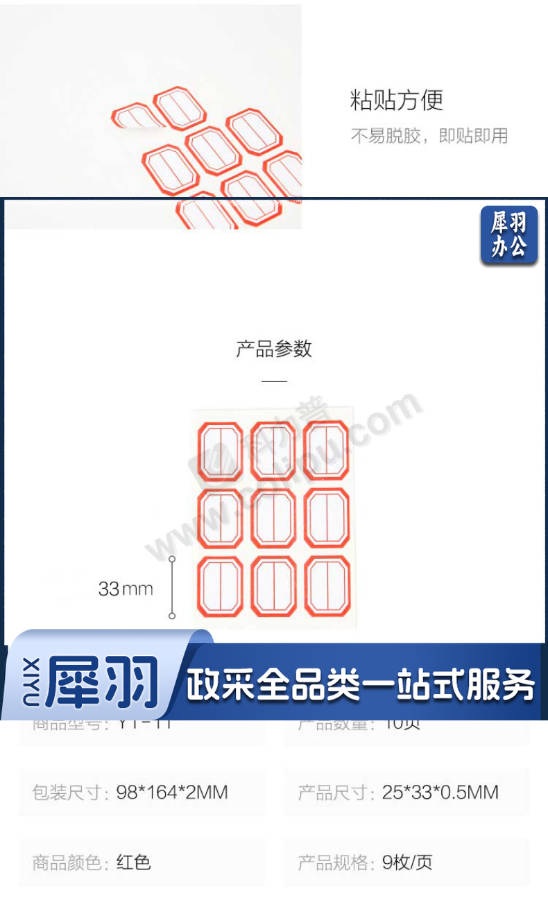晨光 M&G 自粘性标签 YT-11 9枚×10 33×25mm (红色) 10张/包 (二等分)