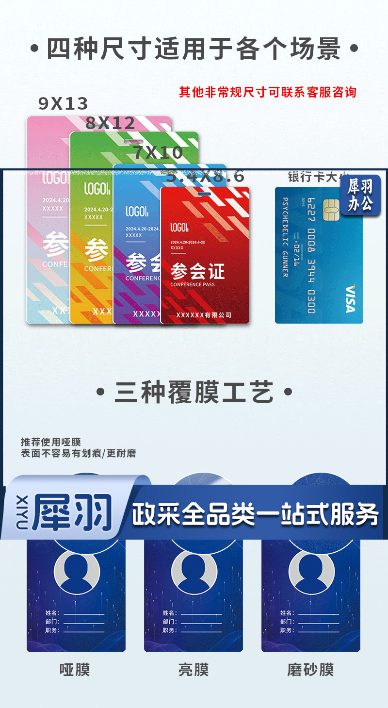 PVC工作证员工工牌定制高端人像卡胸牌定做参会证代表证胸卡制作86*54