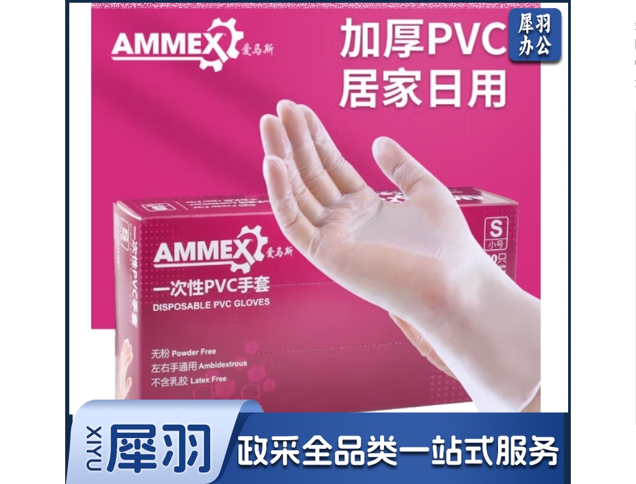 爱马斯 一次性PVC手套 防水防滑 劳保日常多用途 GPX3KRT大码100只/盒