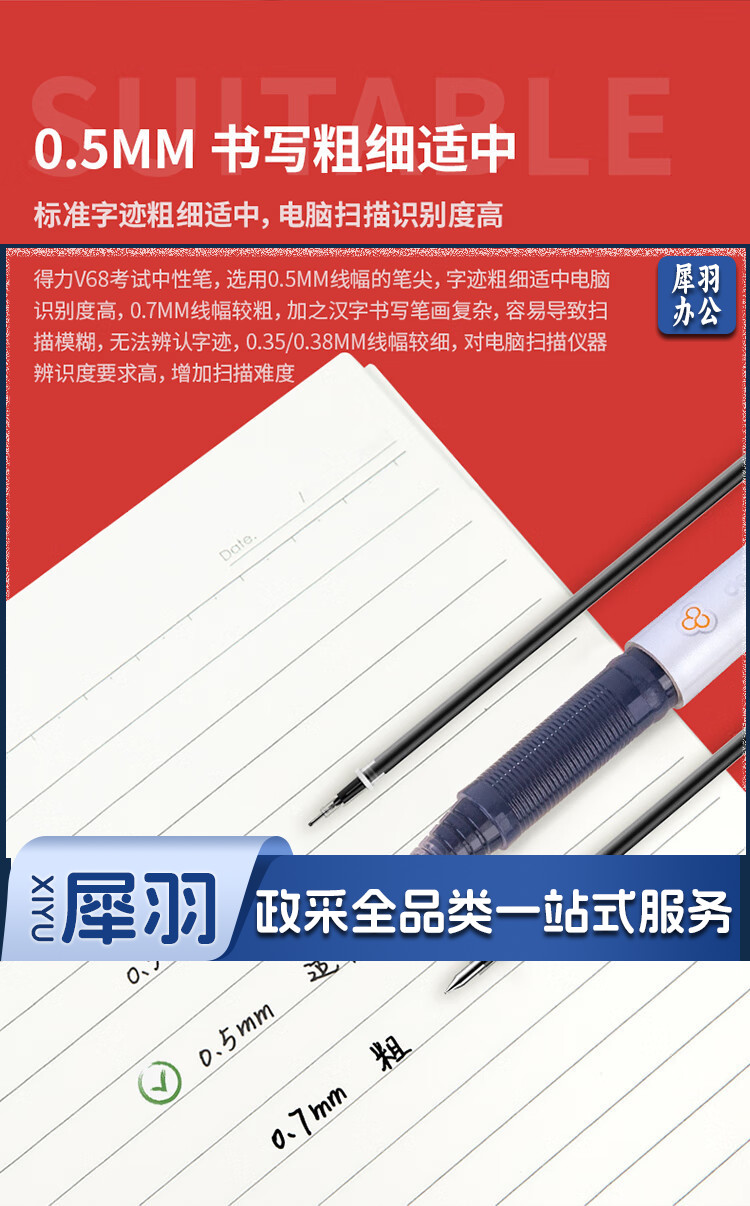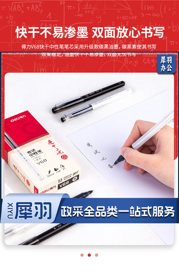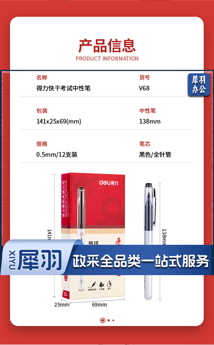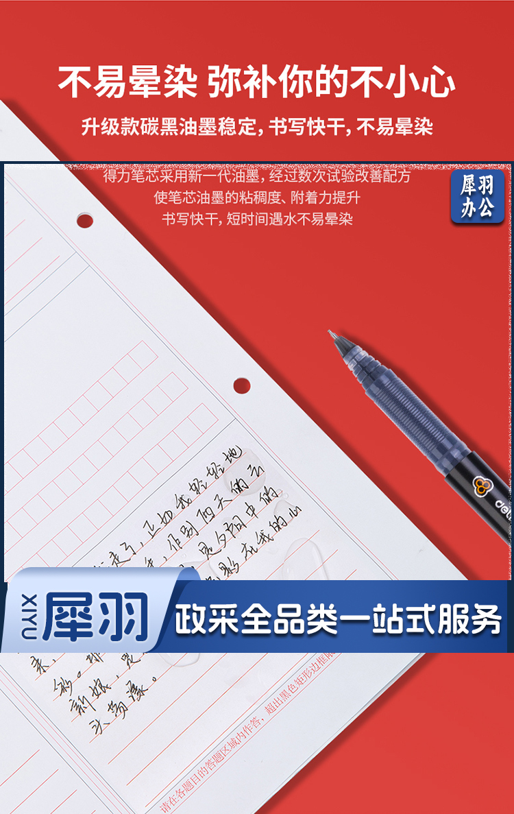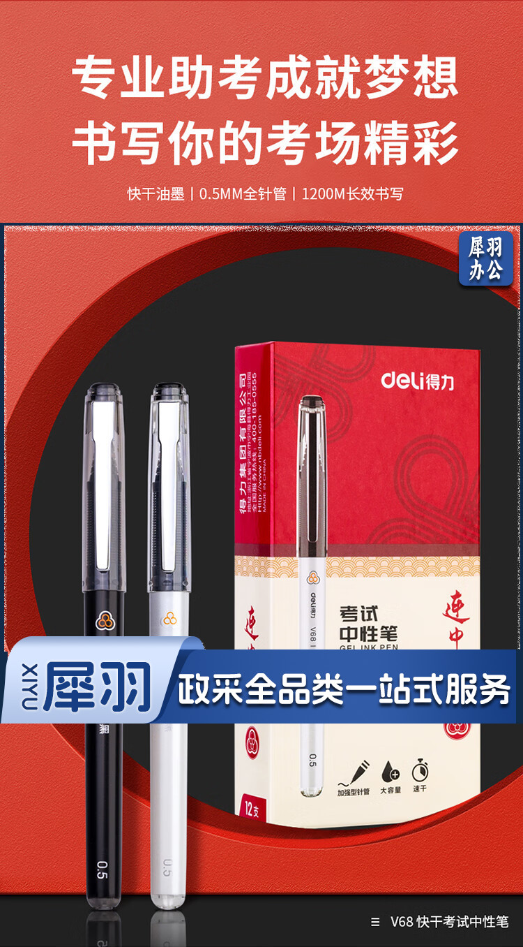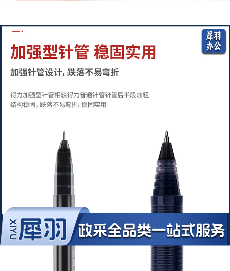 得力(deli)中性笔 速干大容量 全针管碳黑学生签字笔 12支/盒KS-V68