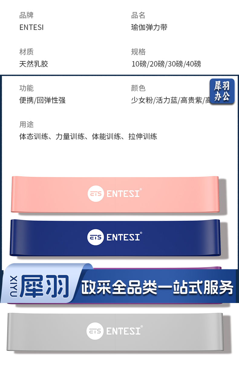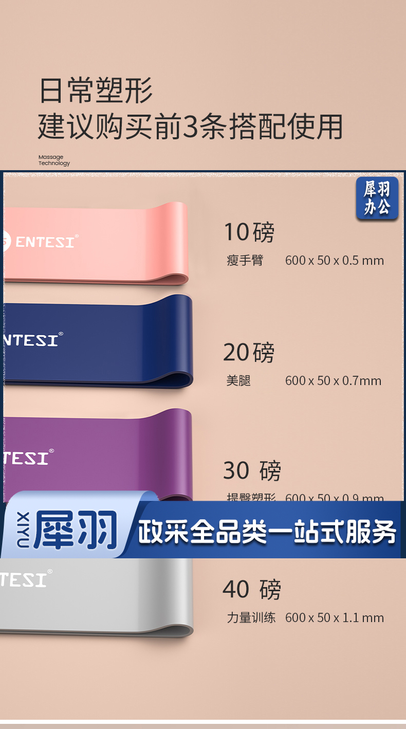 弹力带健身阻力带力量训练深蹲神器瑜伽翘臀拉力带(10-40磅4条)