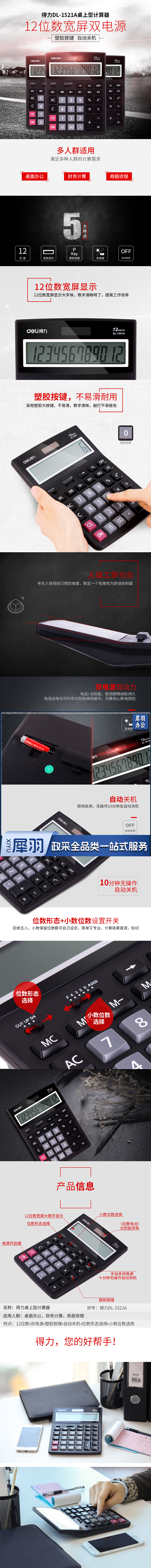 得力/deli 1521A 桌面计算器(单位:台) 黑