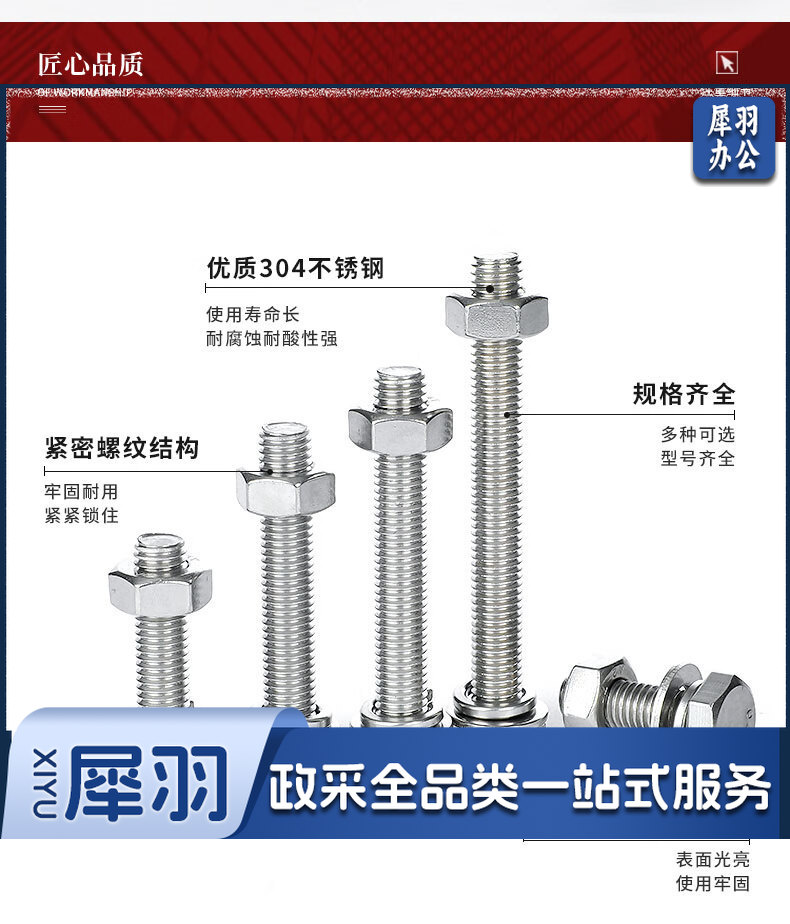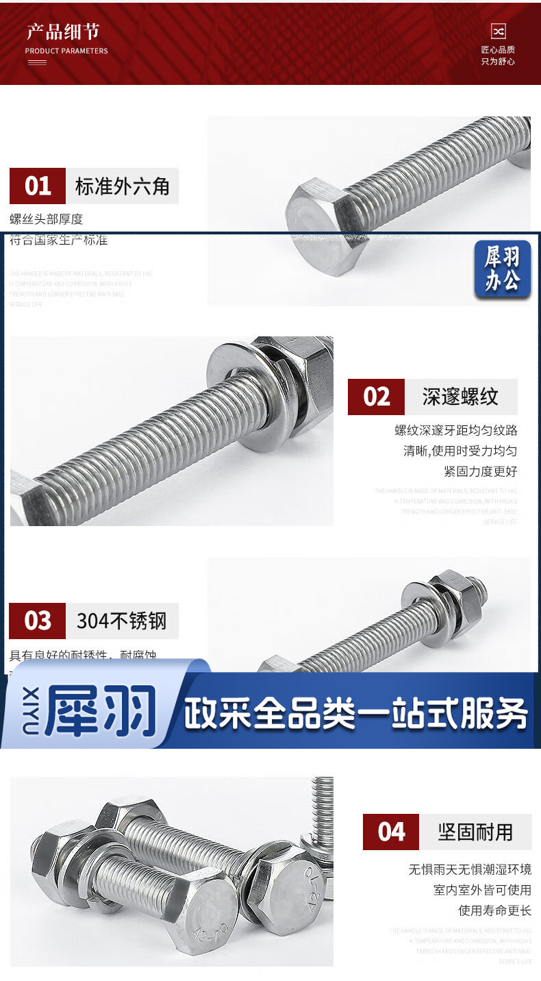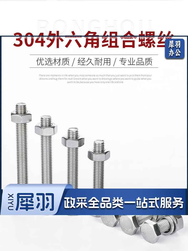 10*4cm 螺丝 304不锈钢螺丝套装六角螺栓螺母 10套起售
