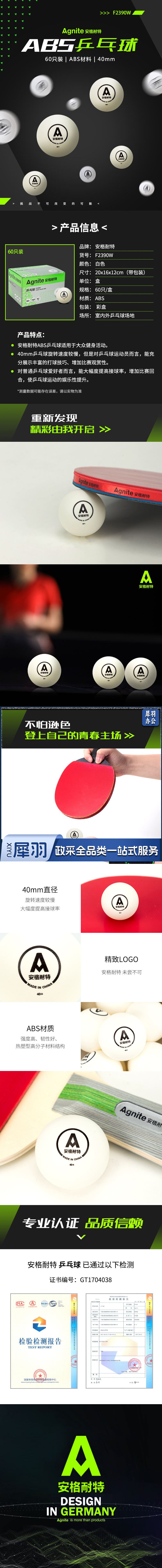 安格耐特(Agnite)F2390W乒乓球 ABS材质 40mm (白色)(60个/盒)