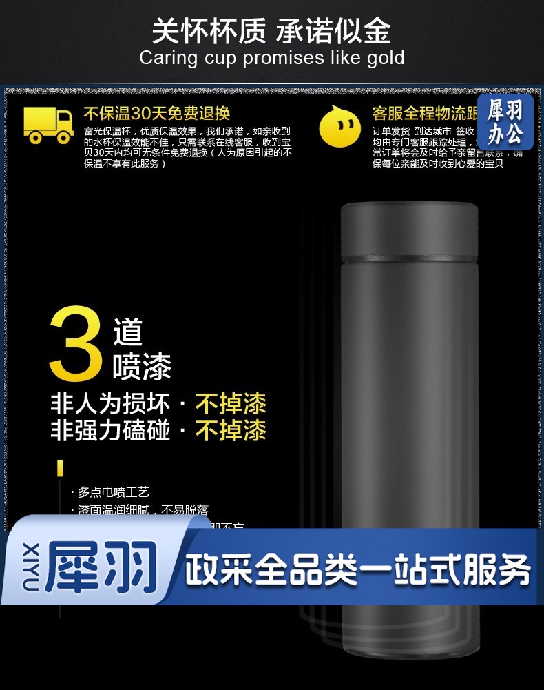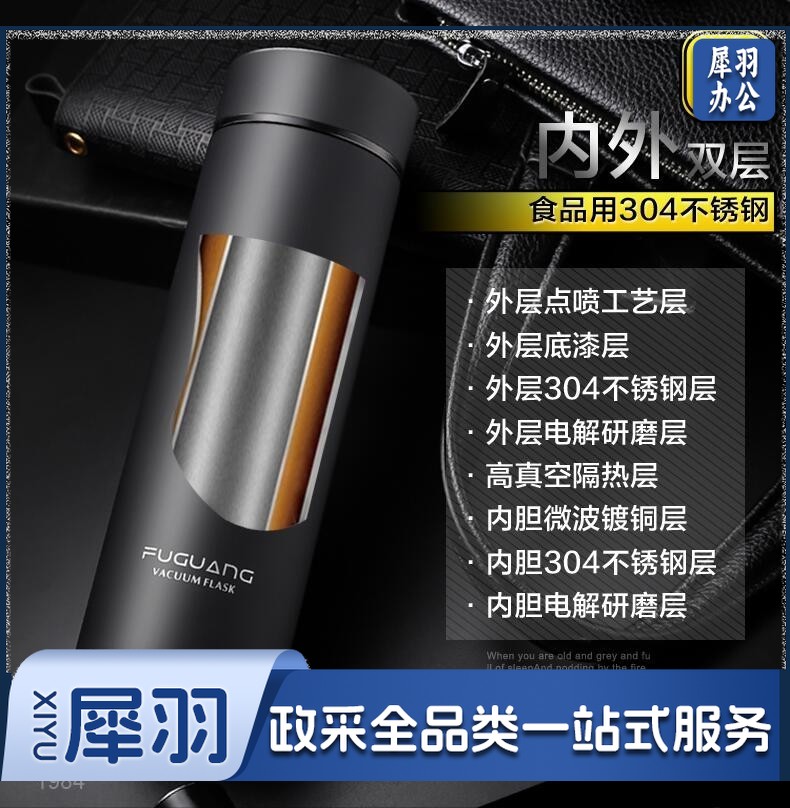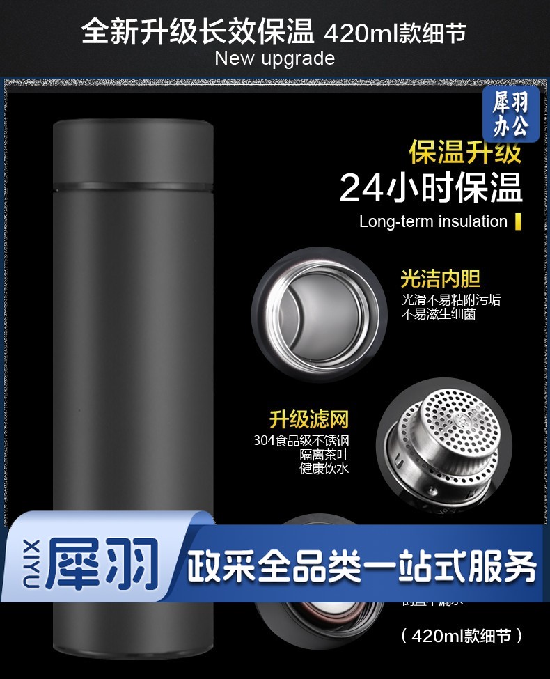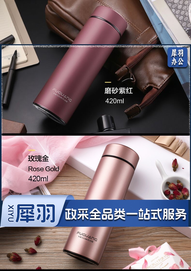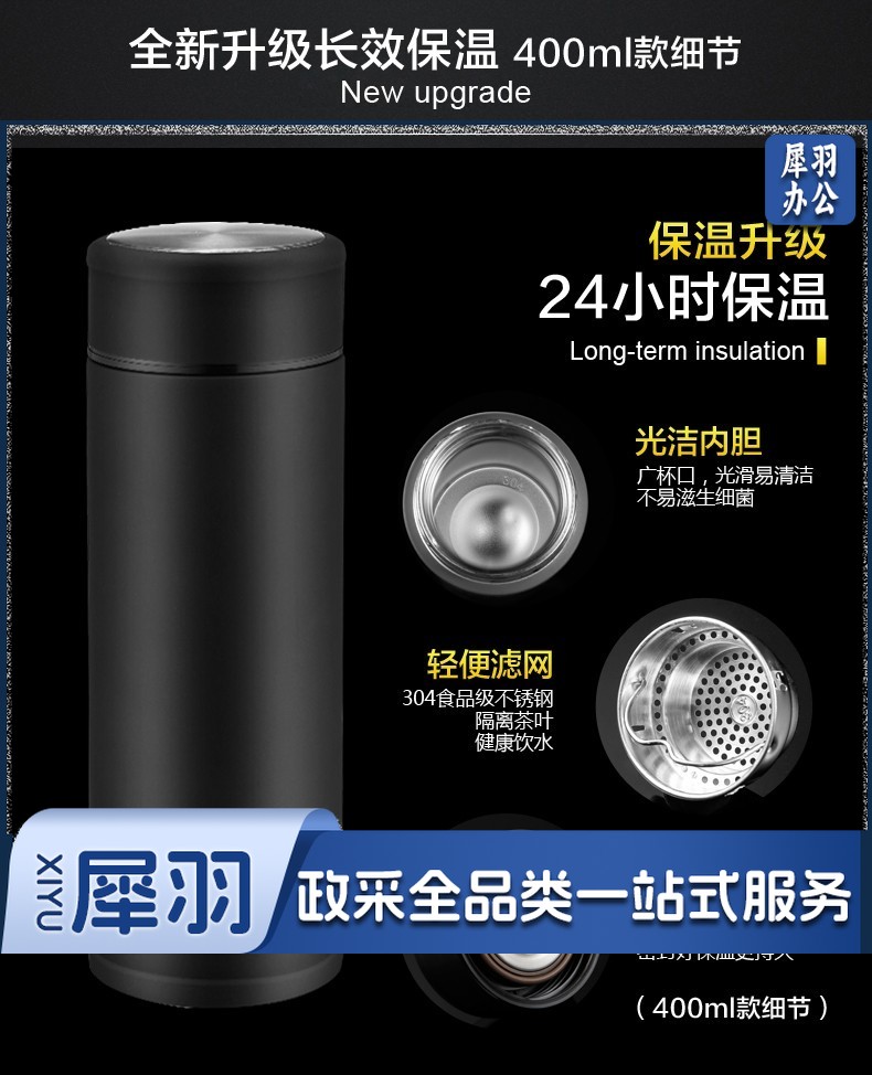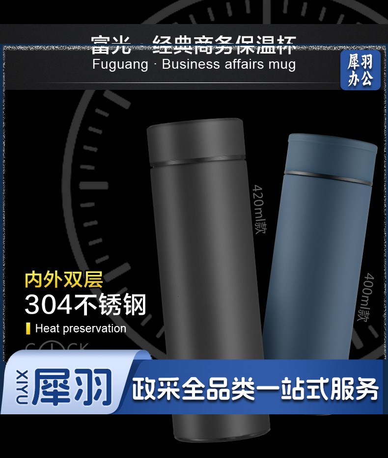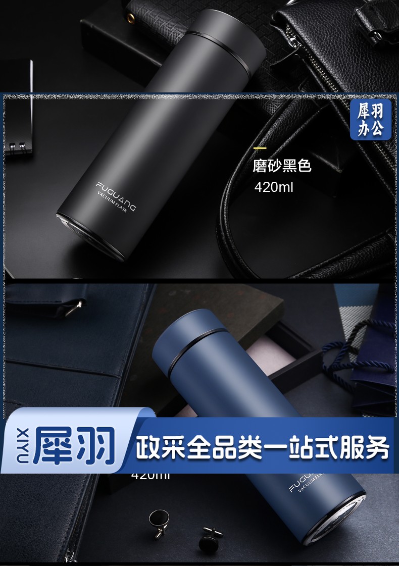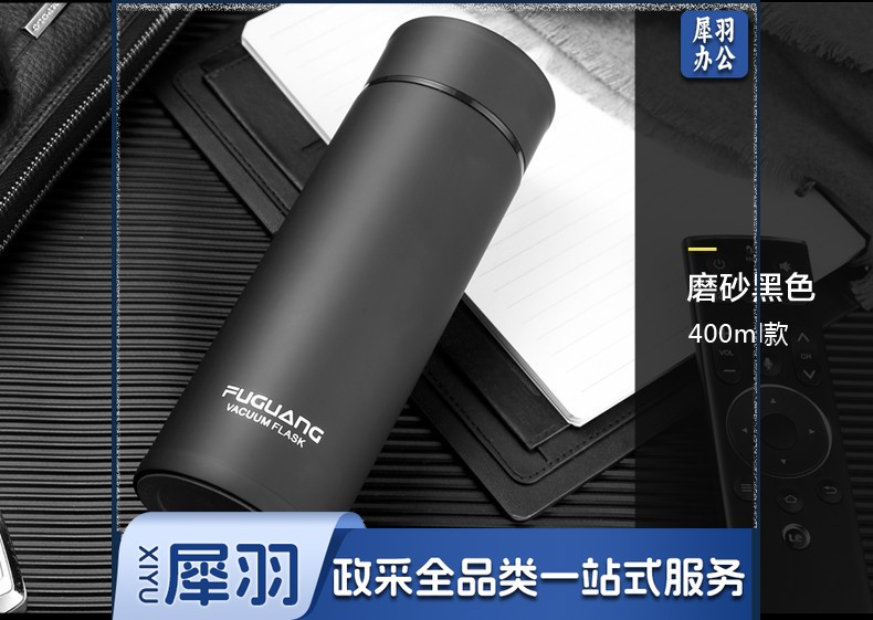 富光 保温杯304不锈钢男女士商务车载泡茶学生便携礼品水杯子定制刻字 磨砂黑色420ml