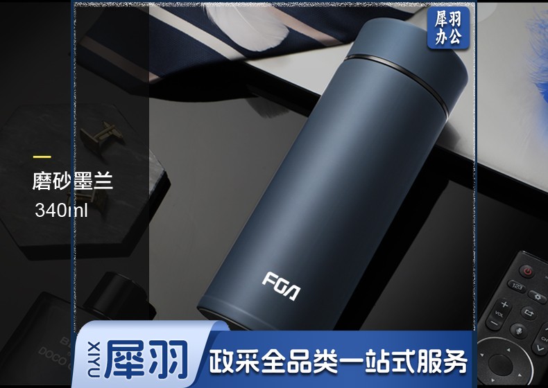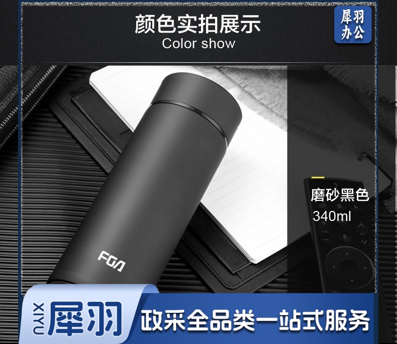 富光 保温杯304不锈钢男女士商务车载泡茶学生便携礼品水杯子磨砂黑色420ml