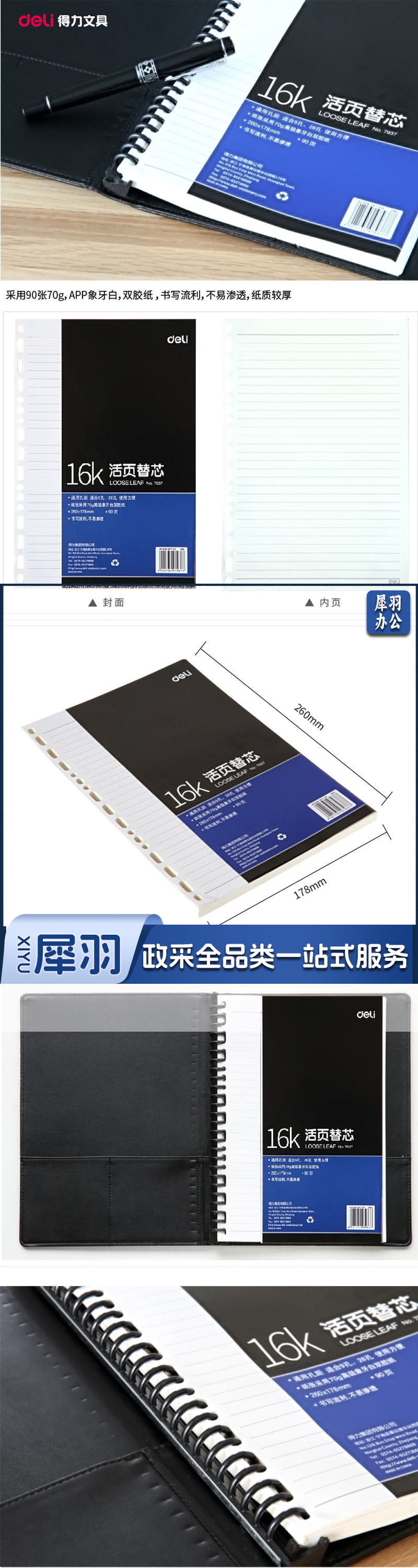 得力 7937 活页记事本簿替芯 16K 90页(10本起售)