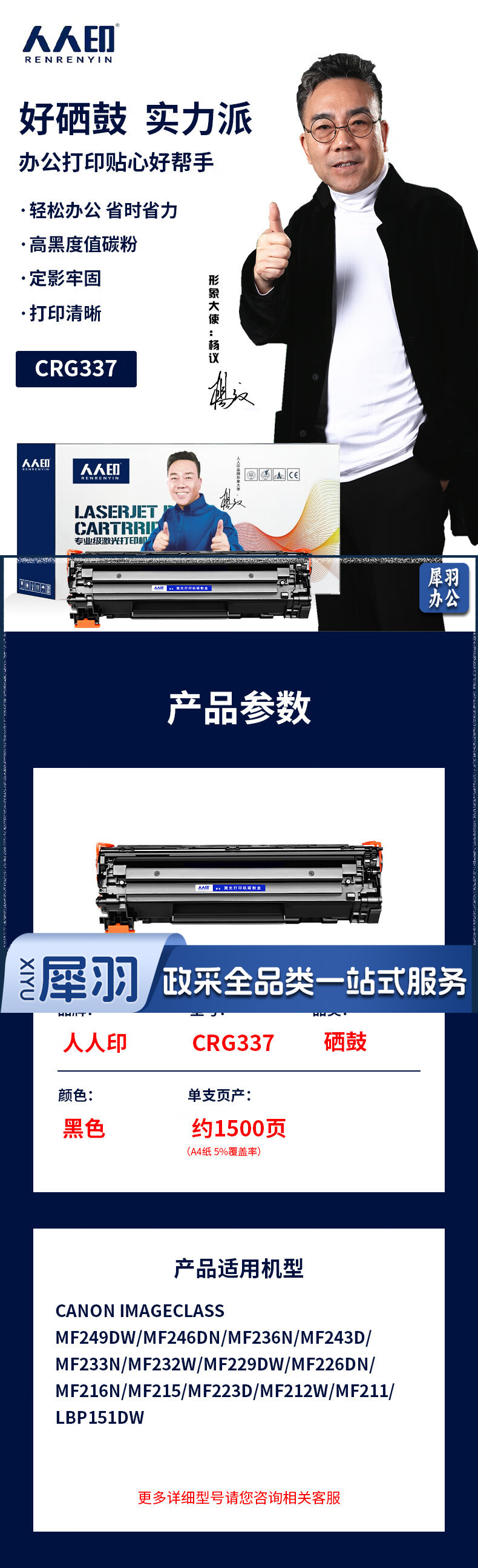 人人印 CRG337 适用佳能MF232w mf243d mf215 mf211 246dn MF236N MF249dw 227dw LBP151dw 粉 盒/1500页