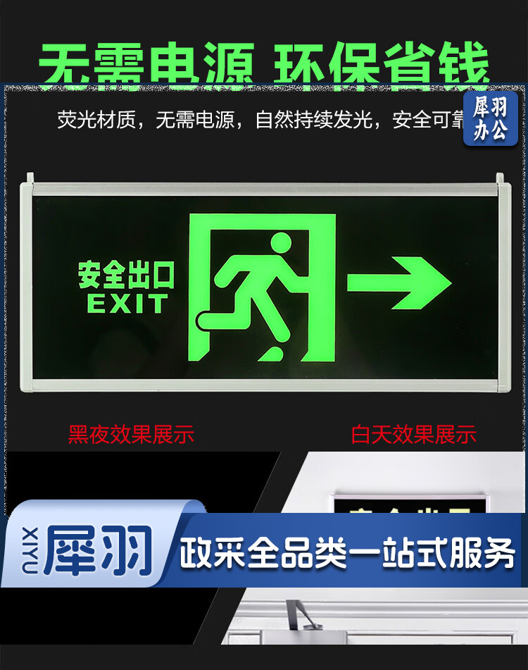 自发光夜光安全指示牌应急疏散指示灯 安全出口标示牌无需电源 双面安全出口