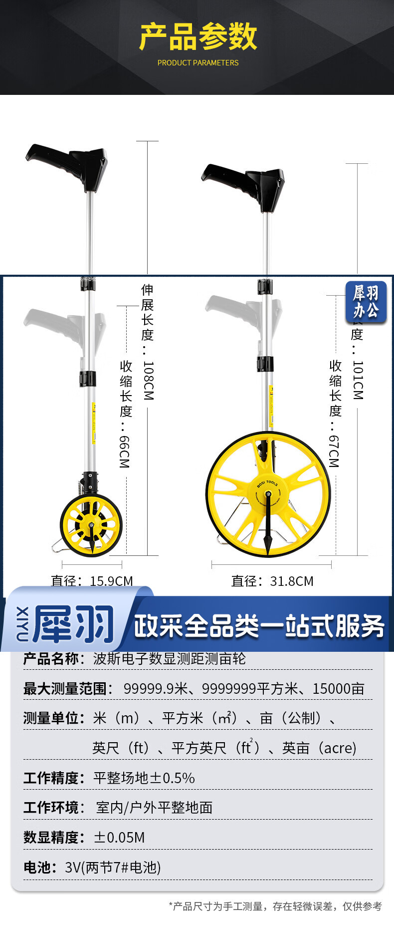 波斯(BOSI)电子数显式测距轮手推滚轮式测距仪量路车器户外滚动推尺工程测量尺 BS02605(159MM)