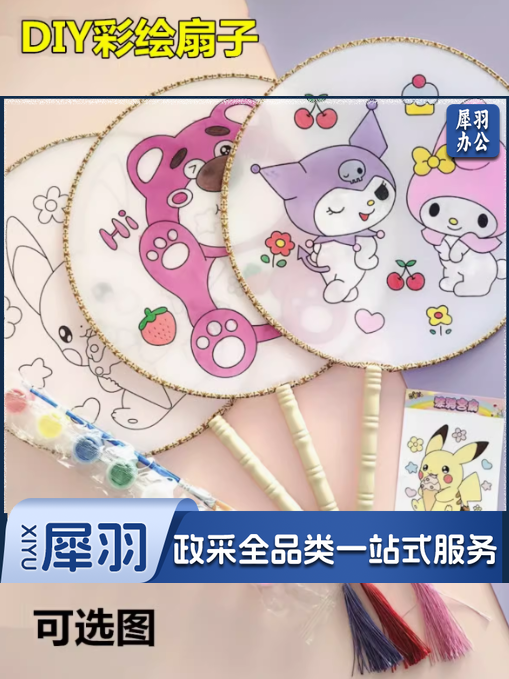 加厚宣纸空白团扇子 工笔手绘画白描底稿填色临摹DIY活动扇面