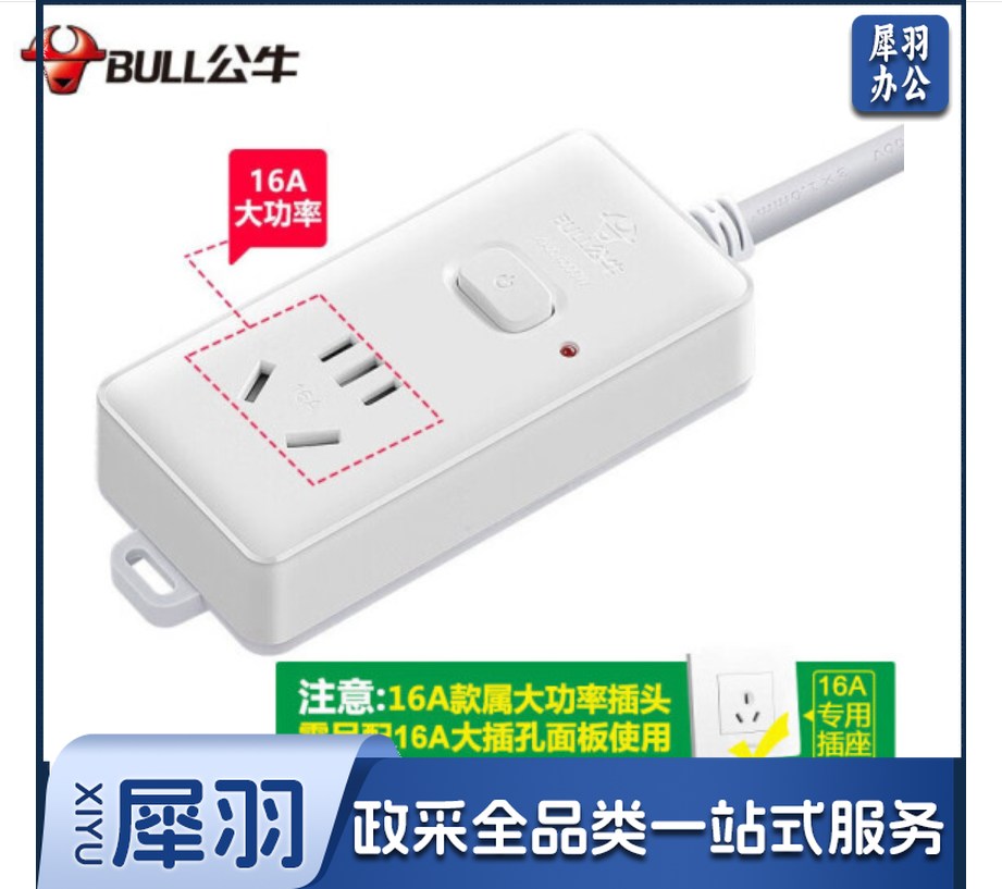 公牛(BULL)大功率16A空调插线板 1位总控3米 GN-104D