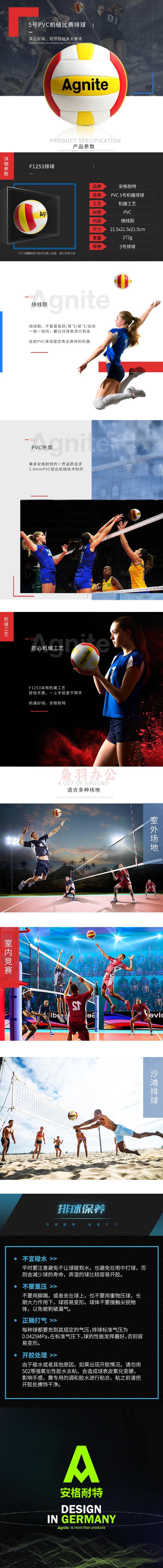 安格耐特F1253_PVC5号排球(白+黄+红)