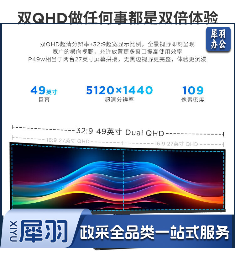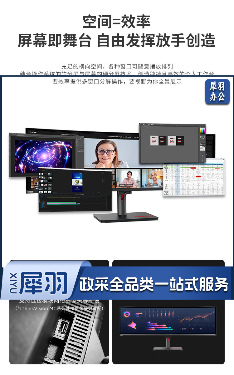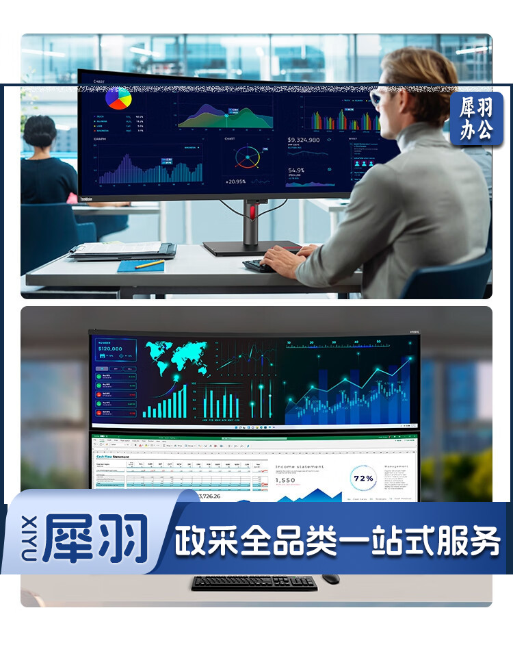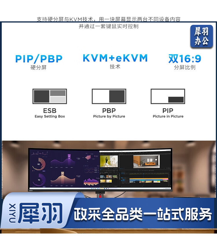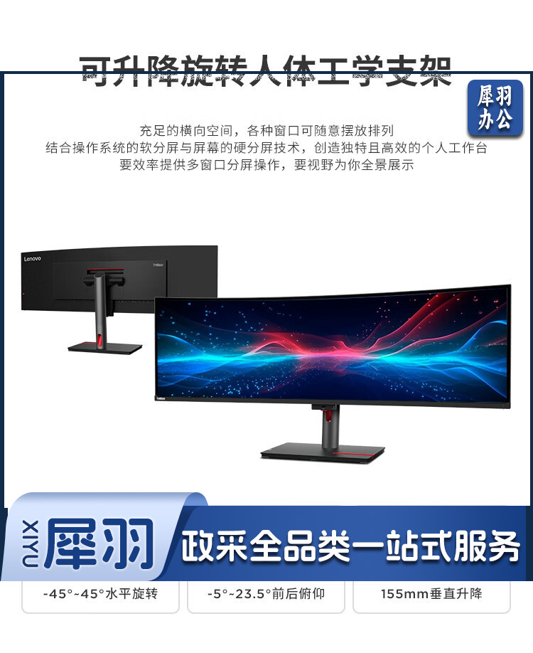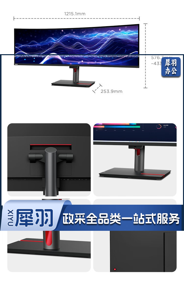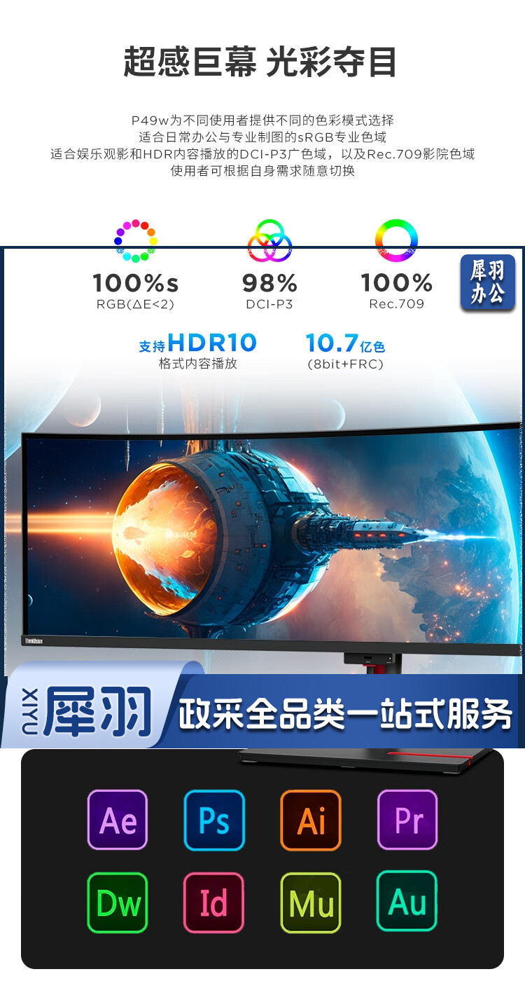 联想Thinkvision49英寸显示器32:9超宽曲面带鱼屏 双2K IPS-Black面板 HDR 智能分屏P49w-30