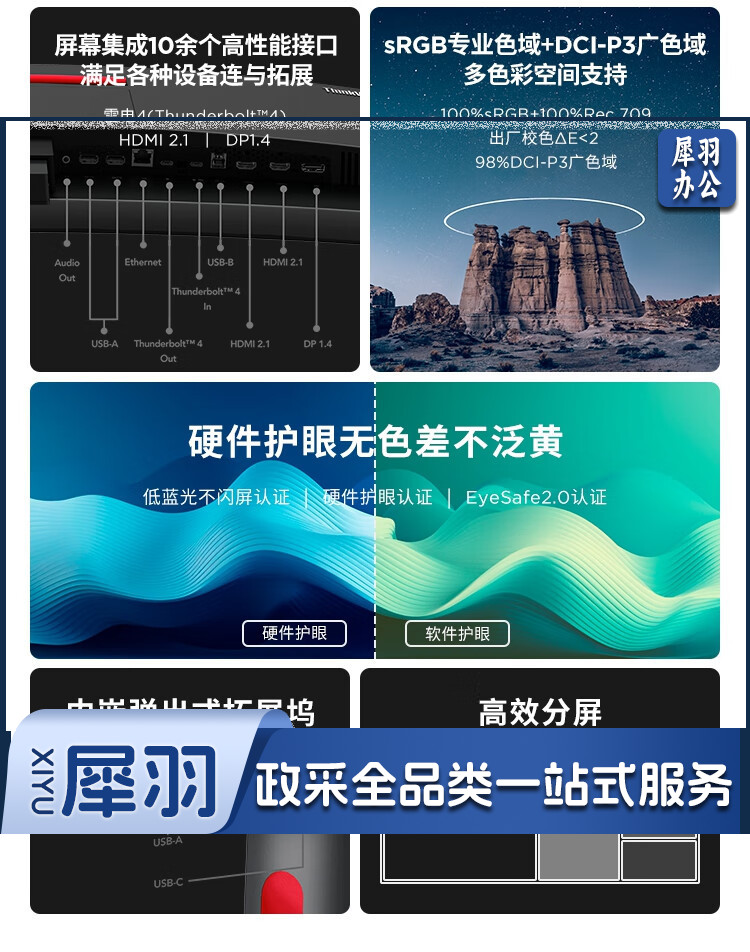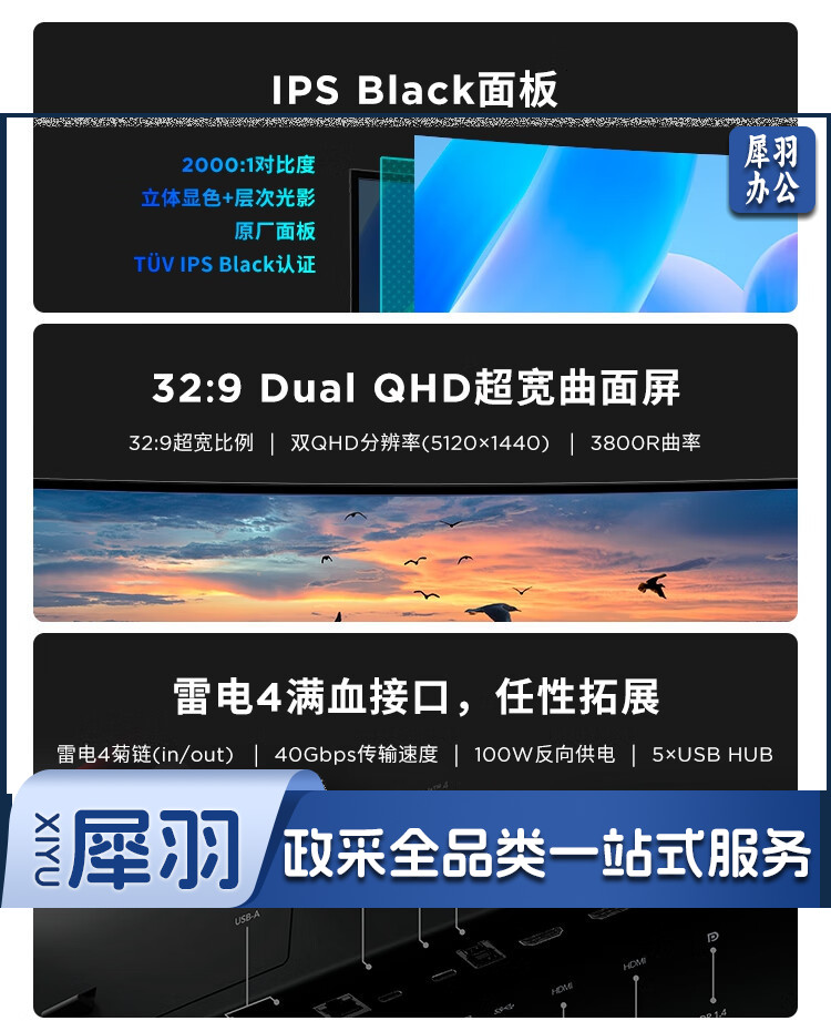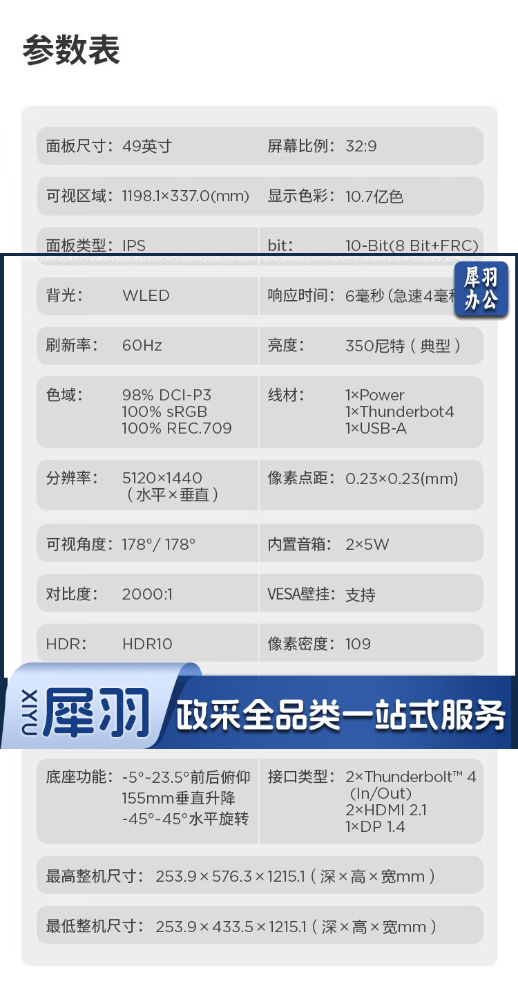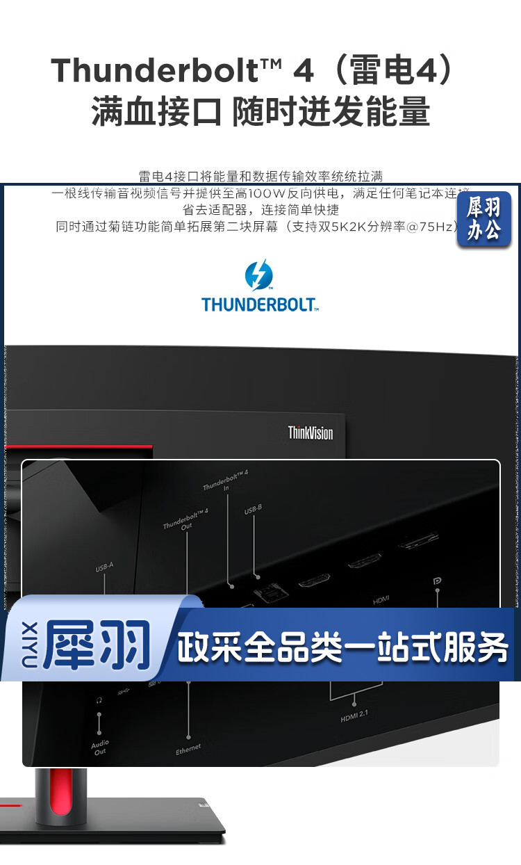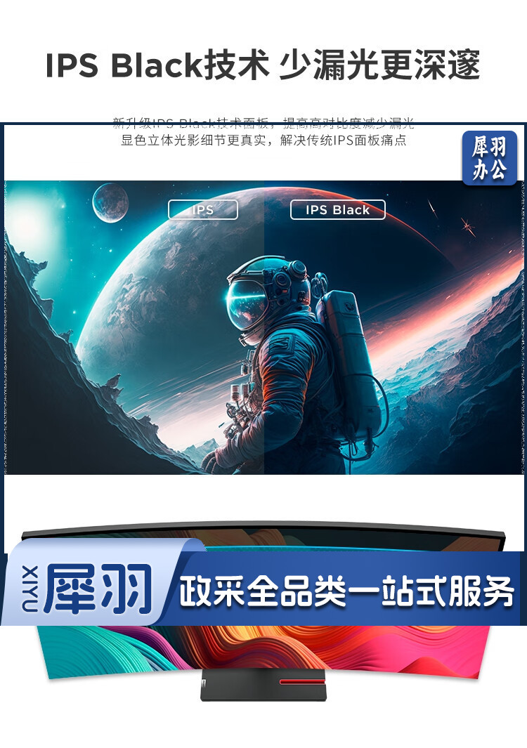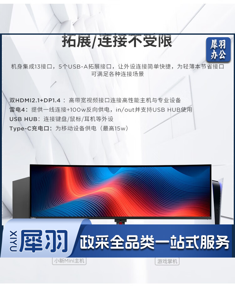 联想Thinkvision49英寸显示器32:9超宽曲面带鱼屏 双2K IPS-Black面板 HDR 智能分屏P49w-30