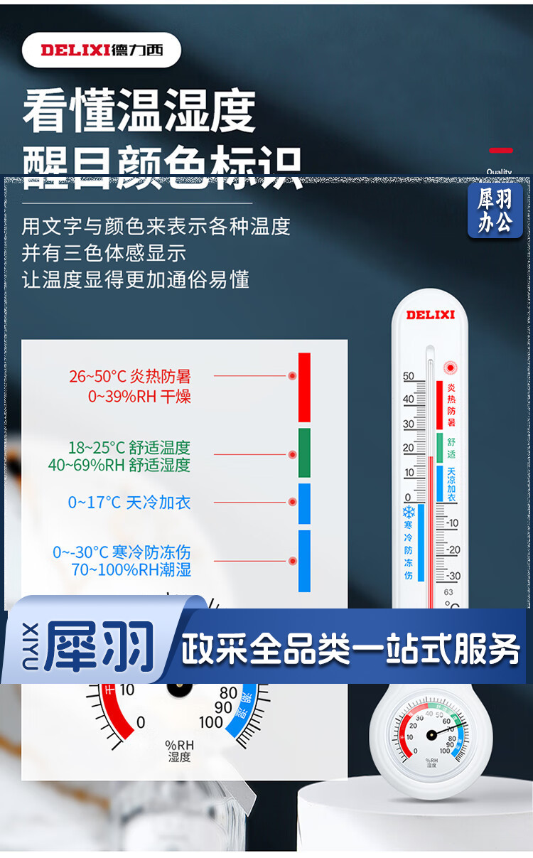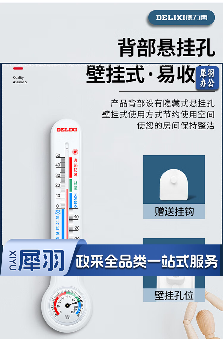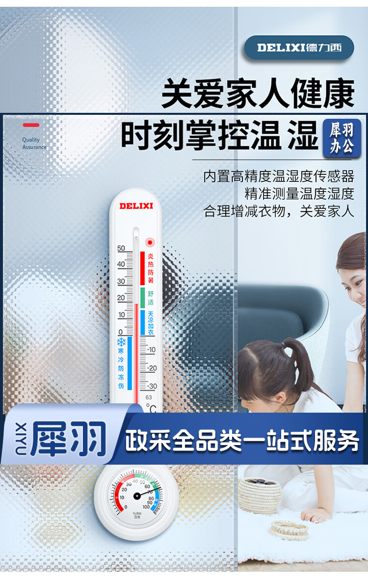 德力西(DELIXI)温湿度计室内玻璃管家用高精度婴儿房壁挂式大棚养殖干湿温度计DM-1010