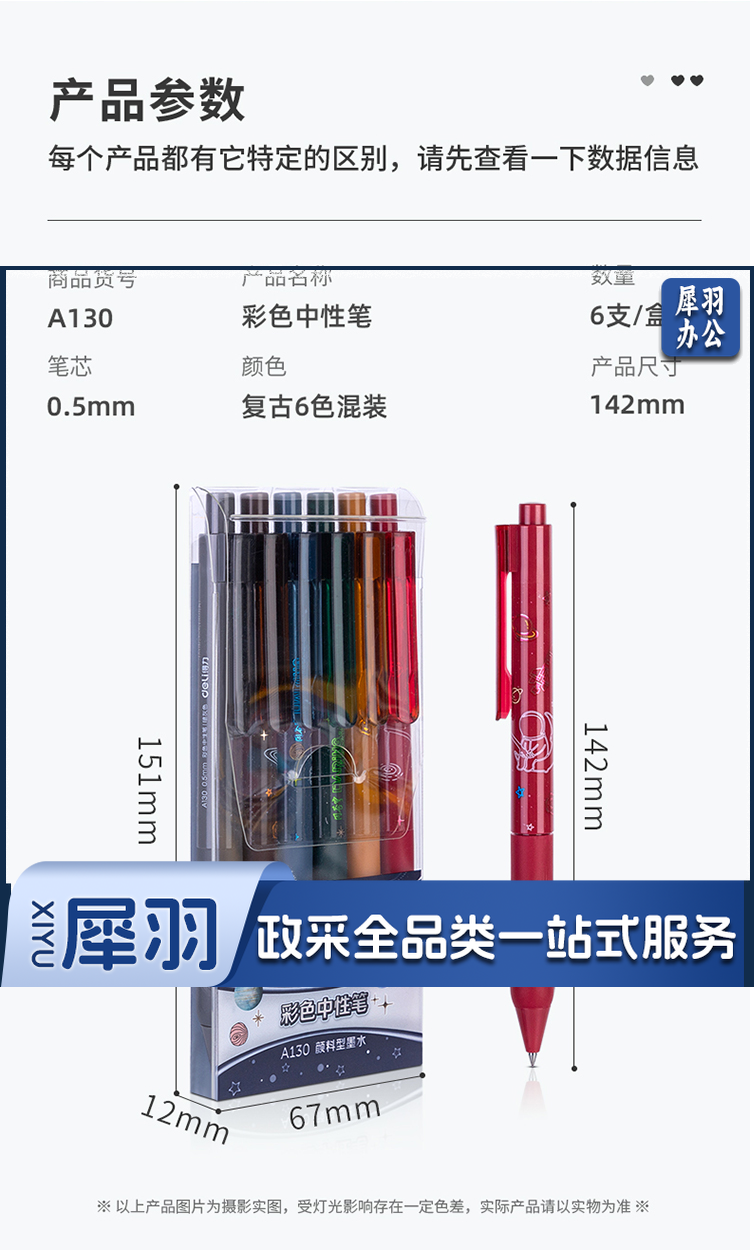 得力A130中国航天复古色学生按动中性笔0.5mm子弹头(混)(6色/PET盒)