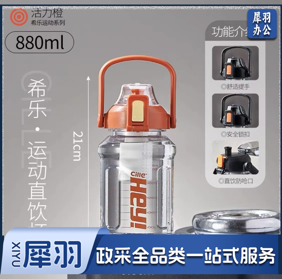 希乐(cille)大容量水杯880ml(颜色随机/备注颜色)