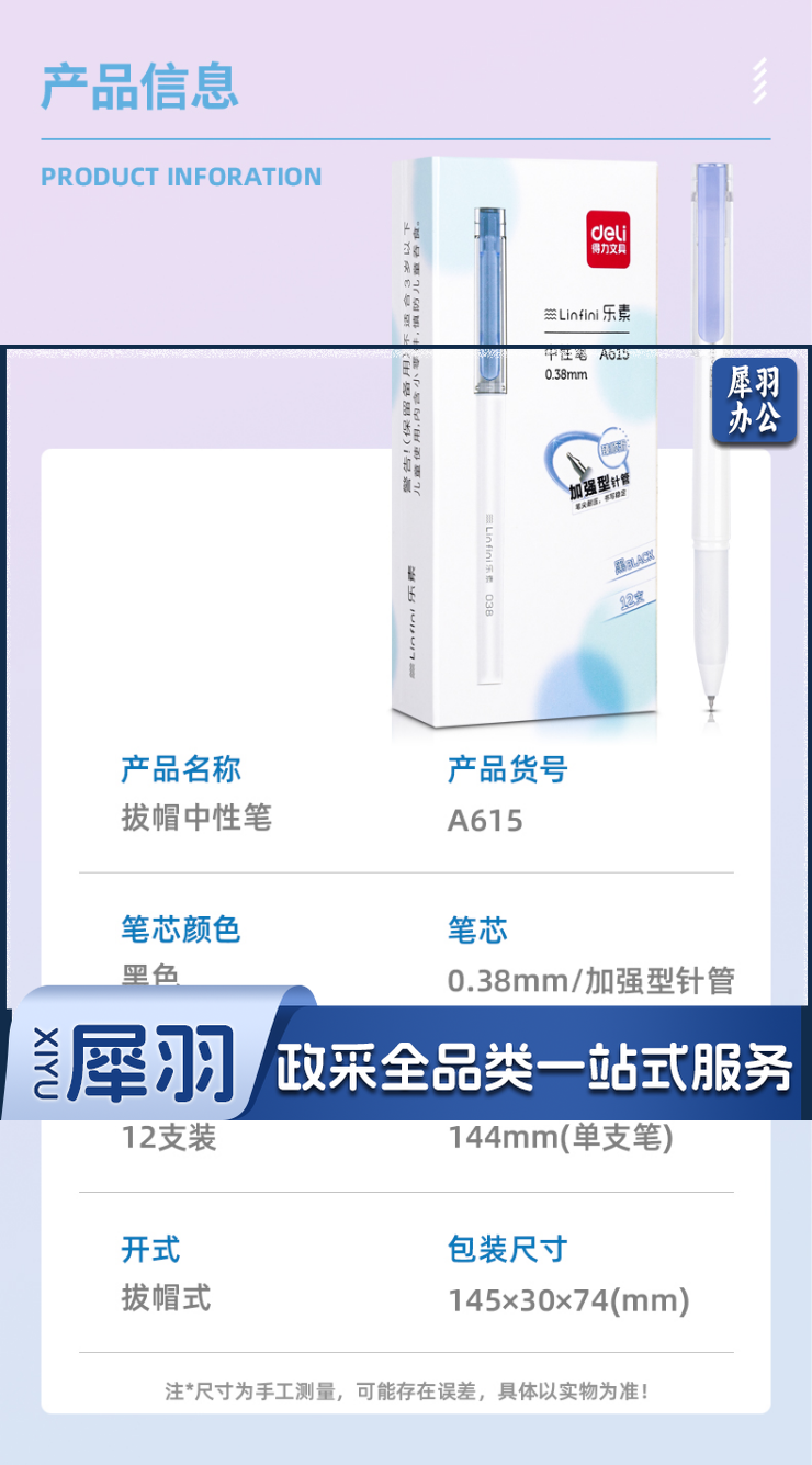 得力A615乐素臻顺滑学生中性笔0.38mm加强型针管(黑)(支)