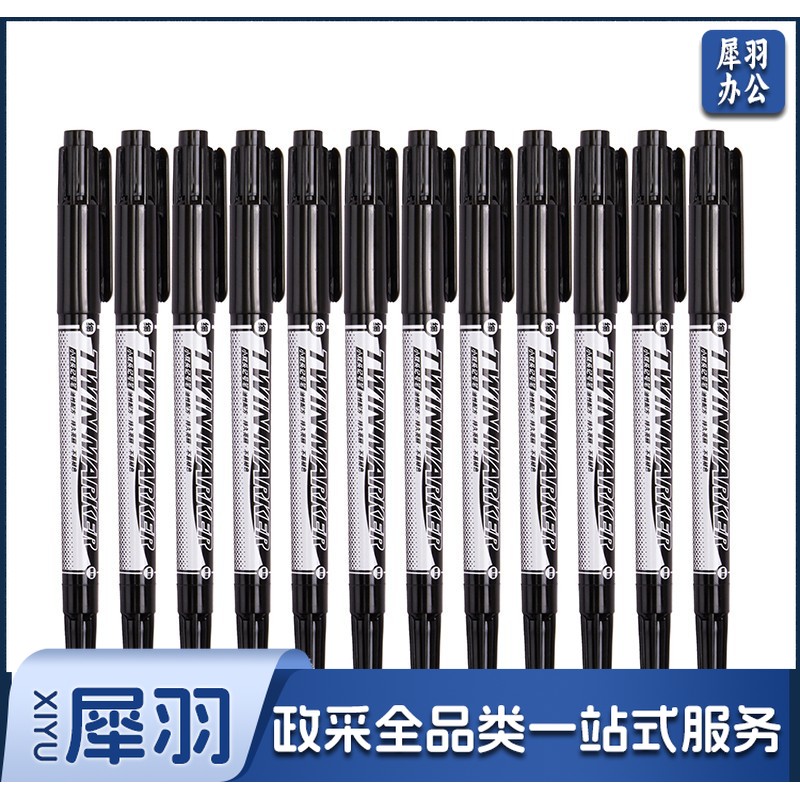 晨光(M&G)黑色双头记号笔 12支/盒XPMV7403