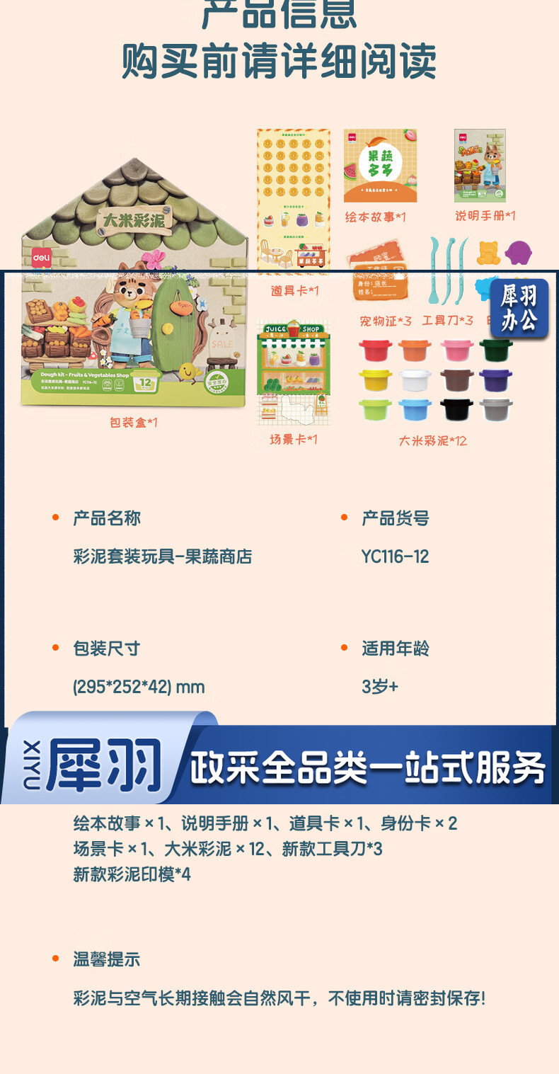 得力(deli) 12色大米彩泥 儿童安全无味橡皮泥超轻粘土 YC116-12