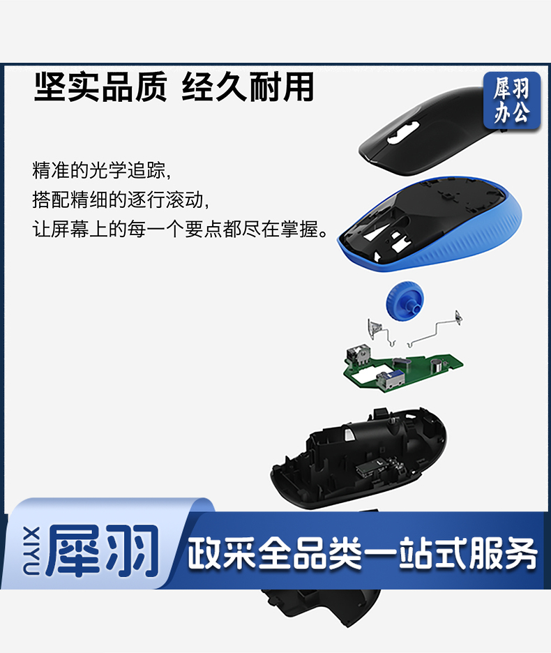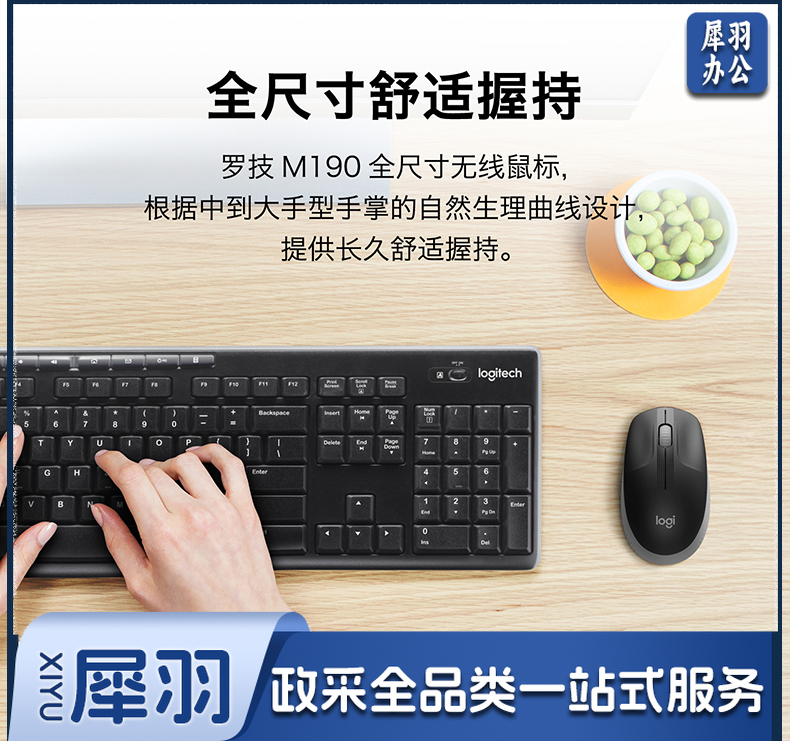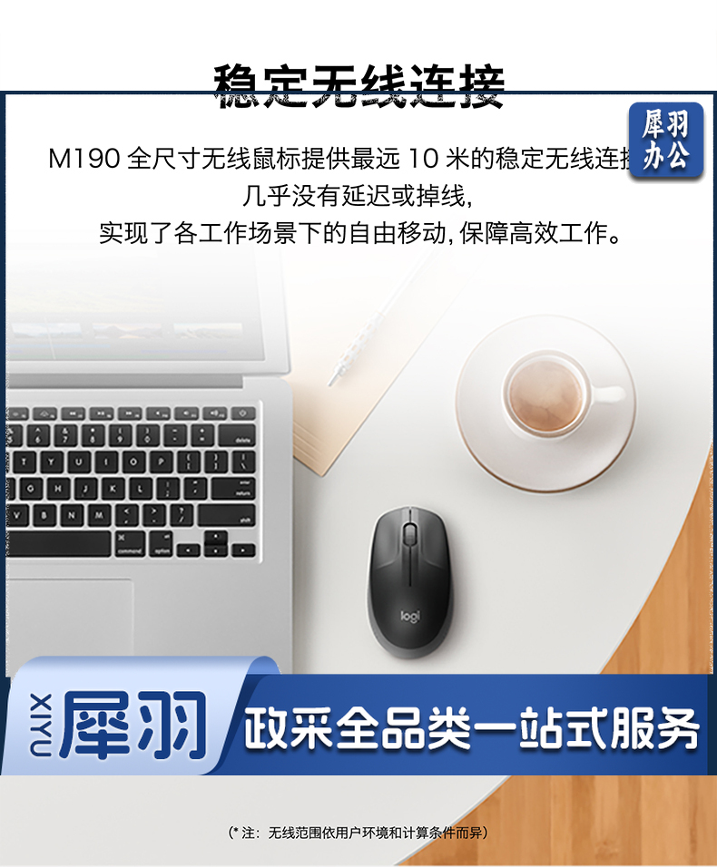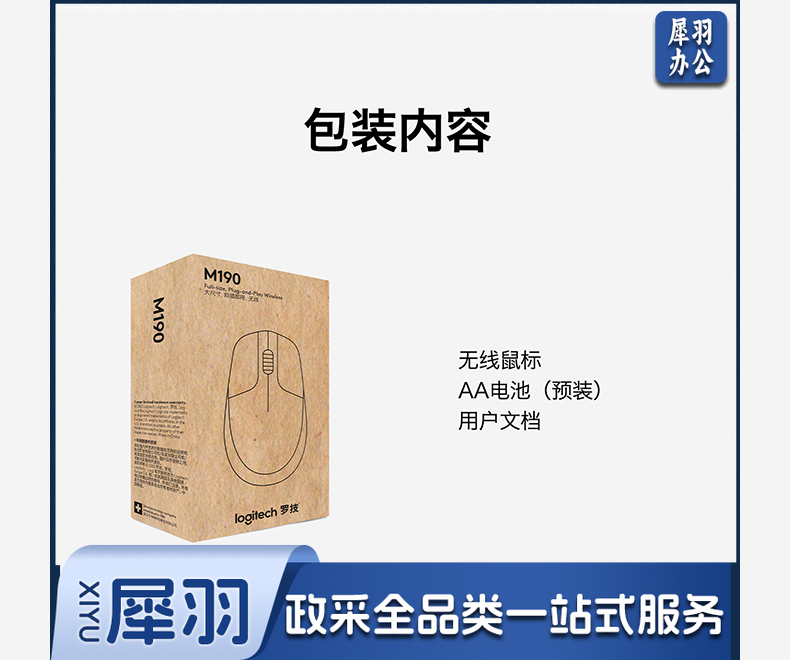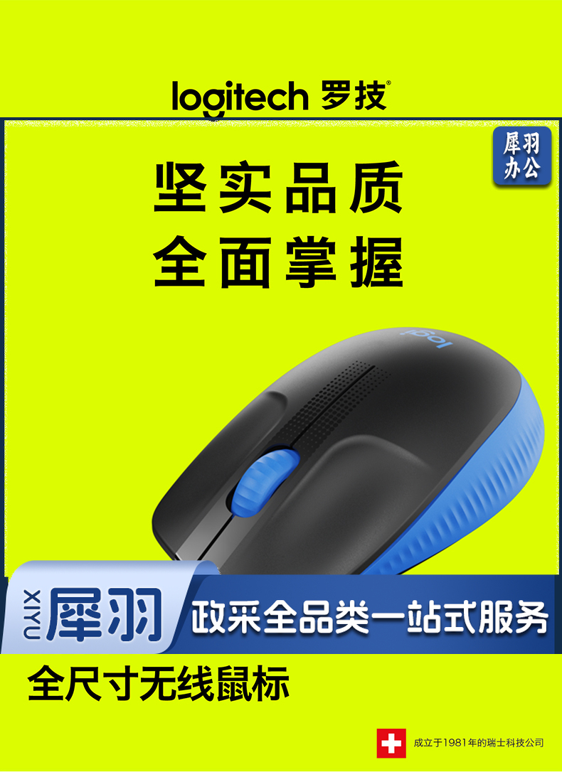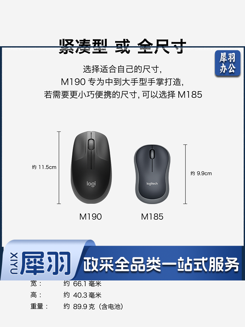 罗技(Logitech) 无线鼠标M190全尺寸笔记本电脑商务办公无线光电鼠标拥有省电模式 蓝色(商用)