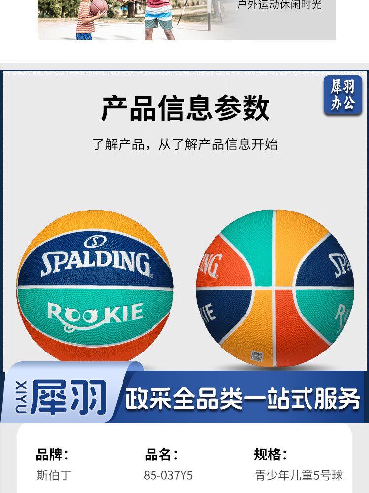 斯伯丁(SPALDING)耐磨室内外通用儿童青少年5号橡胶篮球