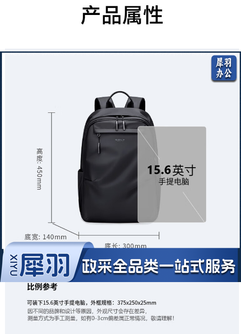 双肩包男士15.6吋电脑背包男防泼水旅行出差运动背包学生书包