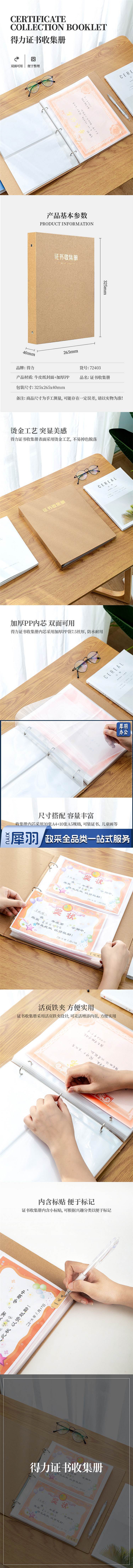 得力72403证书收集册325*265*40mm(黄)(单位:个)